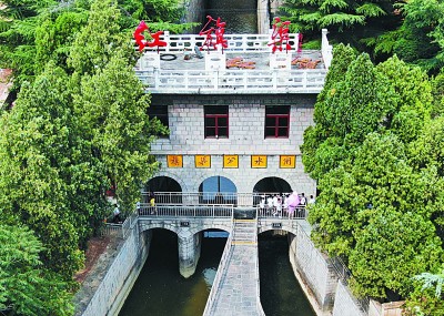 游客在河南林州红旗渠分水闸参观。新华社发