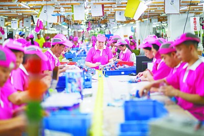 汕头市澄海区某公司装配车间里,一派繁忙景象。新华社发