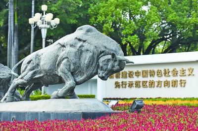 “拓荒牛”雕塑已成为深圳特区的一个文化地标。新华社发