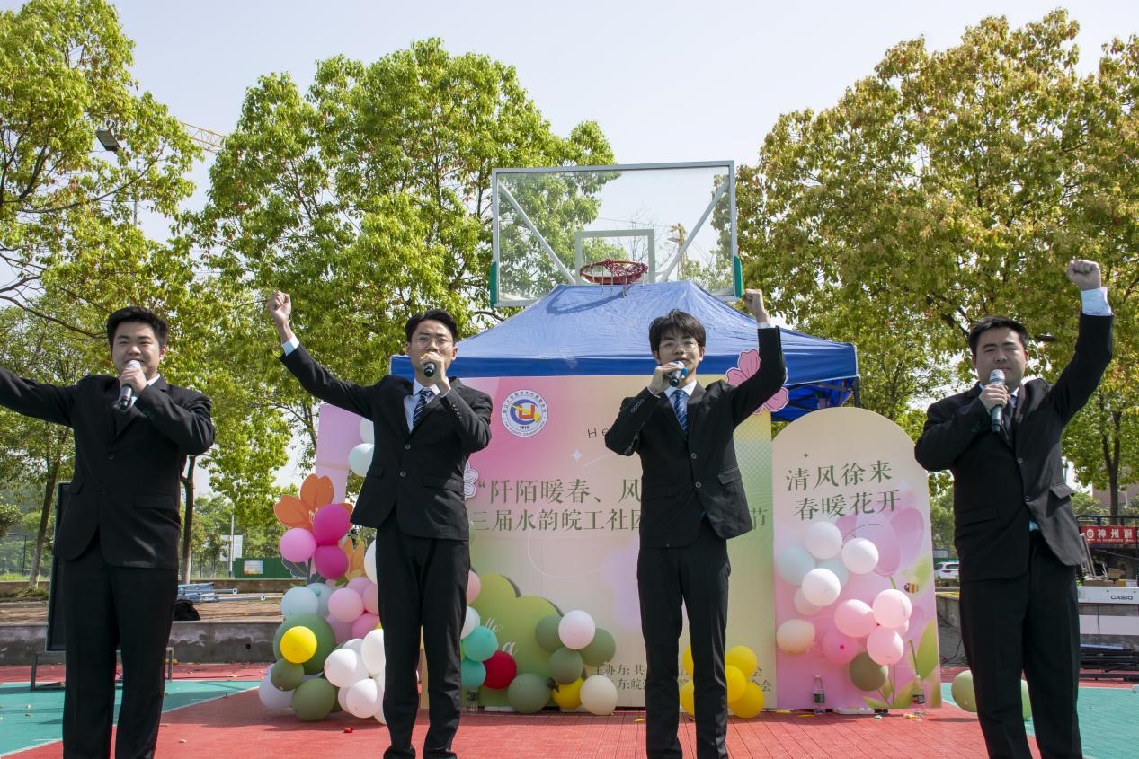 为深入学习宣传贯彻党的二十大精神,提升我校学生社团管理建设水平,将水文化贯穿社团组织发展全过程,引导青年学生全面发展,4月15日下午,以“阡陌暖春,风绕樱花”为主题的第三届水韵新利体育手机端官网登录入口社团文化巡礼节开幕式在我校篮球场顺利举行。社团代表近百人参加了本次活动。
