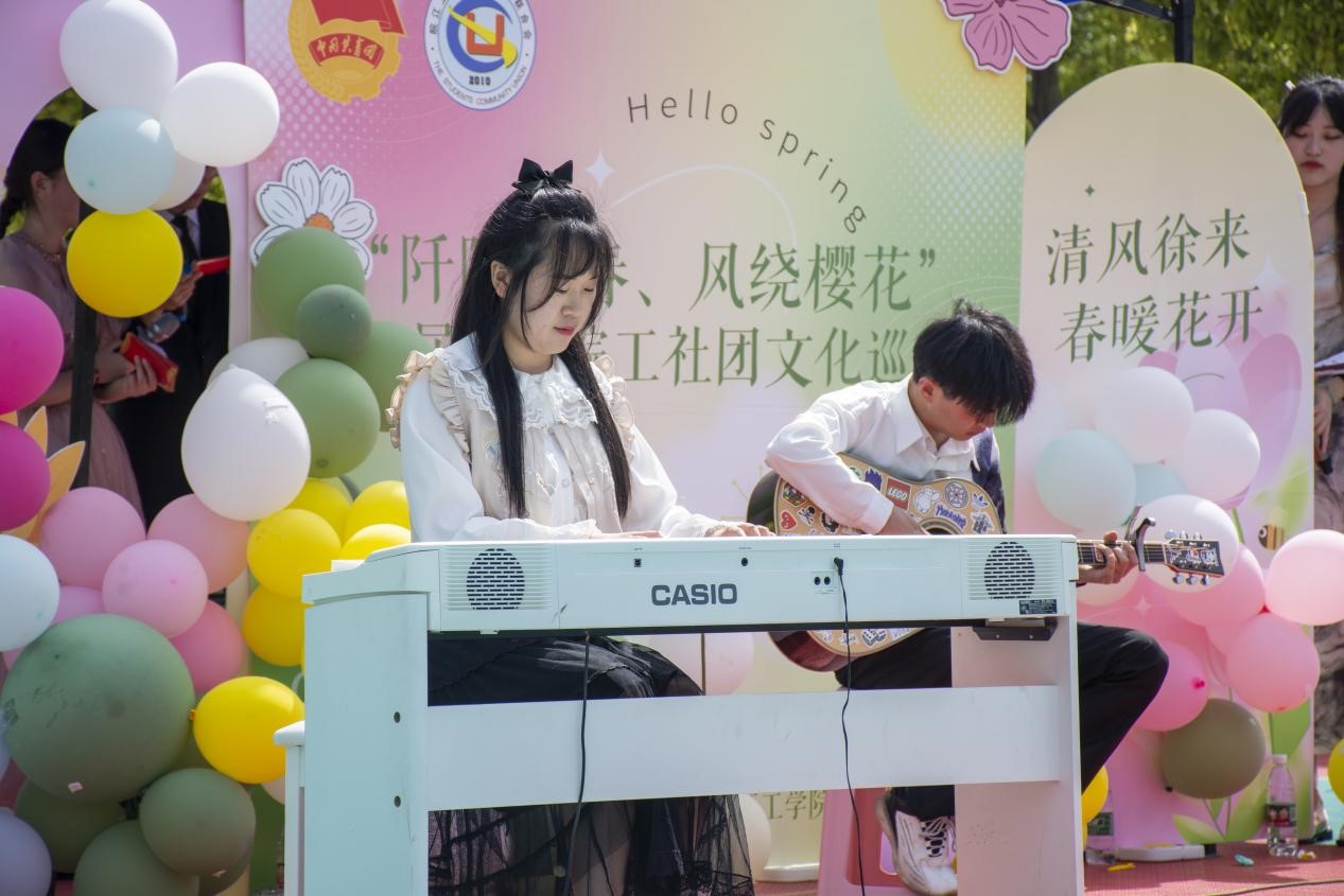 本届学生社团文化巡礼节面向全体在校学生,校团委精心组织,学生社团联合会统筹安排,各学生社团积极参与。巡礼节所有社团活动紧扣“阡陌暖春,风绕樱花”主题,将凝聚新利体育手机端官网登录入口水文化内涵作为重点,形成“老师指导、学生参与”的社团建设发展局面。本届学生社团文化巡礼节共设置开幕式、社团文化节主题活动、闭幕式三大板块。开幕式上,青云汉服社、琴潮吉他社、WT街舞社、合唱团、舞蹈团、主持礼仪朗诵团、话剧团、乐器团等社团展现了各具特色、引人入胜的节目表演。本次开幕式根据社团类型划分出了两个篇章,分别为红色征程篇章和文化艺术篇章。红色征程篇章由主持团吟诵党的诗歌,通过学习党史,传承红色基因,锤炼同学们绝对忠诚的政治品格,让同学们汲取继往开来的精神力量。文化艺术篇章,合唱团、琴潮吉他社、WT街舞社等社团通过表演与创作来展现艺术多姿多彩的魅力。