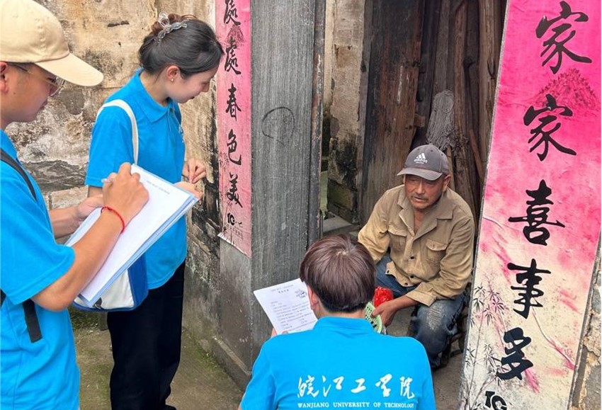 为深入贯彻习近平总书记关于非物质文化遗产保护和乡村振兴重要指示精神,6月29日至7月3日,18新利怎样“三下乡暑期社会实践活动”小分队前往碧山村展开实践调研活动。此次活动围绕碧山村“五抓五促”全面推进“五大振兴”进行开展,其中包括聆听非遗传承人讲述非遗文化故事、走访当地村民,了解村民对非遗传统手工艺的看法、互动拓展体验村民的采桑劳作、参观碧山村古建筑等多项活动。