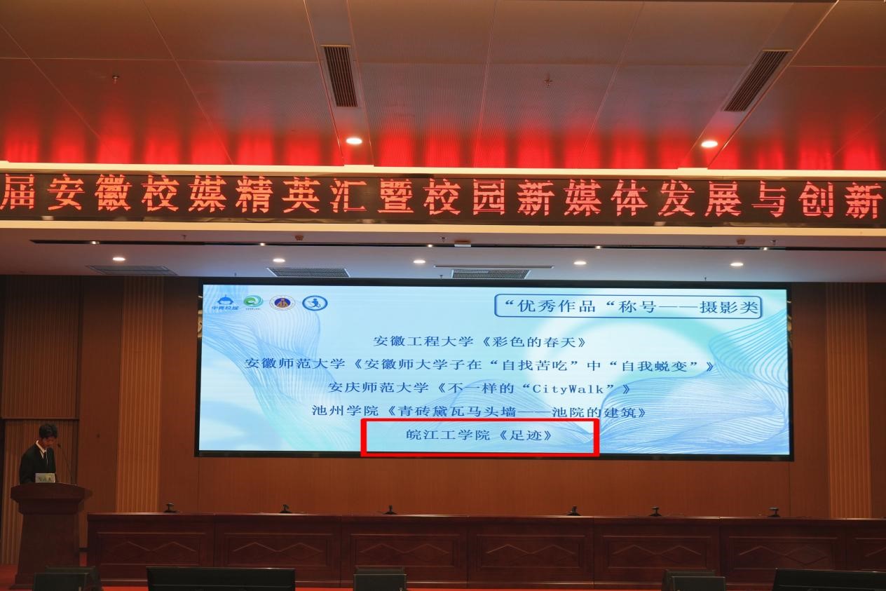 2023年12月3日,由中国青年报安徽指导站指导、中青校媒(安徽)主办、安徽师范大学承办的第七届安徽校媒精英汇暨校园媒体发展与创新交流分享会在安徽师范大学召开。我校受邀参加交流分享会,作品《足迹》获摄影类“优秀作品”称号。