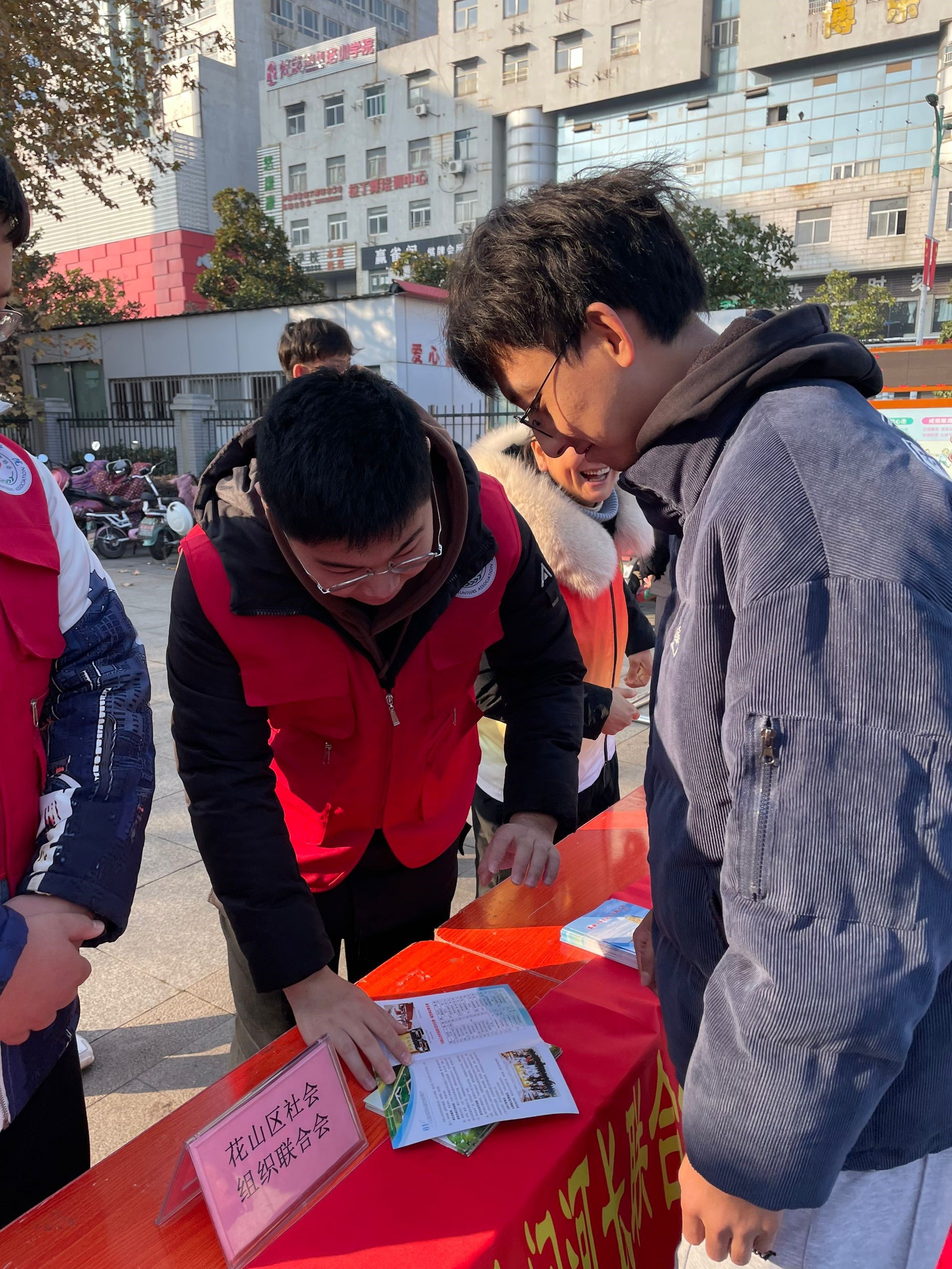 活动在一曲真挚感人的《花山志愿者之歌》中拉开序幕。花山区文明委向今年以来花山区推举的文明培育、文明实践奖项获得者、获得组织代表献上鲜花,为第三期“花山好人”及提名奖获得者颁奖。广场两侧精心布置了展台,我校志愿者以面对面宣传等方式向过往市民介绍志愿者项目。