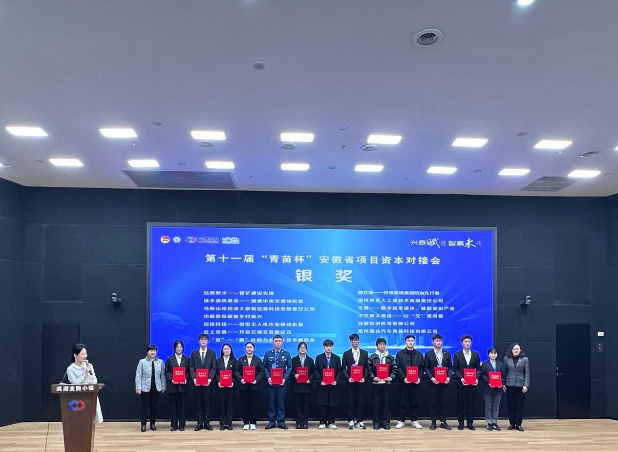 3月7日-8日,由团省委、省科技厅、省人力资源社会保障厅、省青联、省学联联合举办“兴泰赋能 智赢未来”第十一届“青苗杯”安徽省项目资本对接会在合肥落下帷幕。我校《智慧水利——基于无人机检测堤坝渗流系统》创业项目与其他高校及社会项目同台竞技,经过激烈角逐,取得了省级银奖的佳绩。