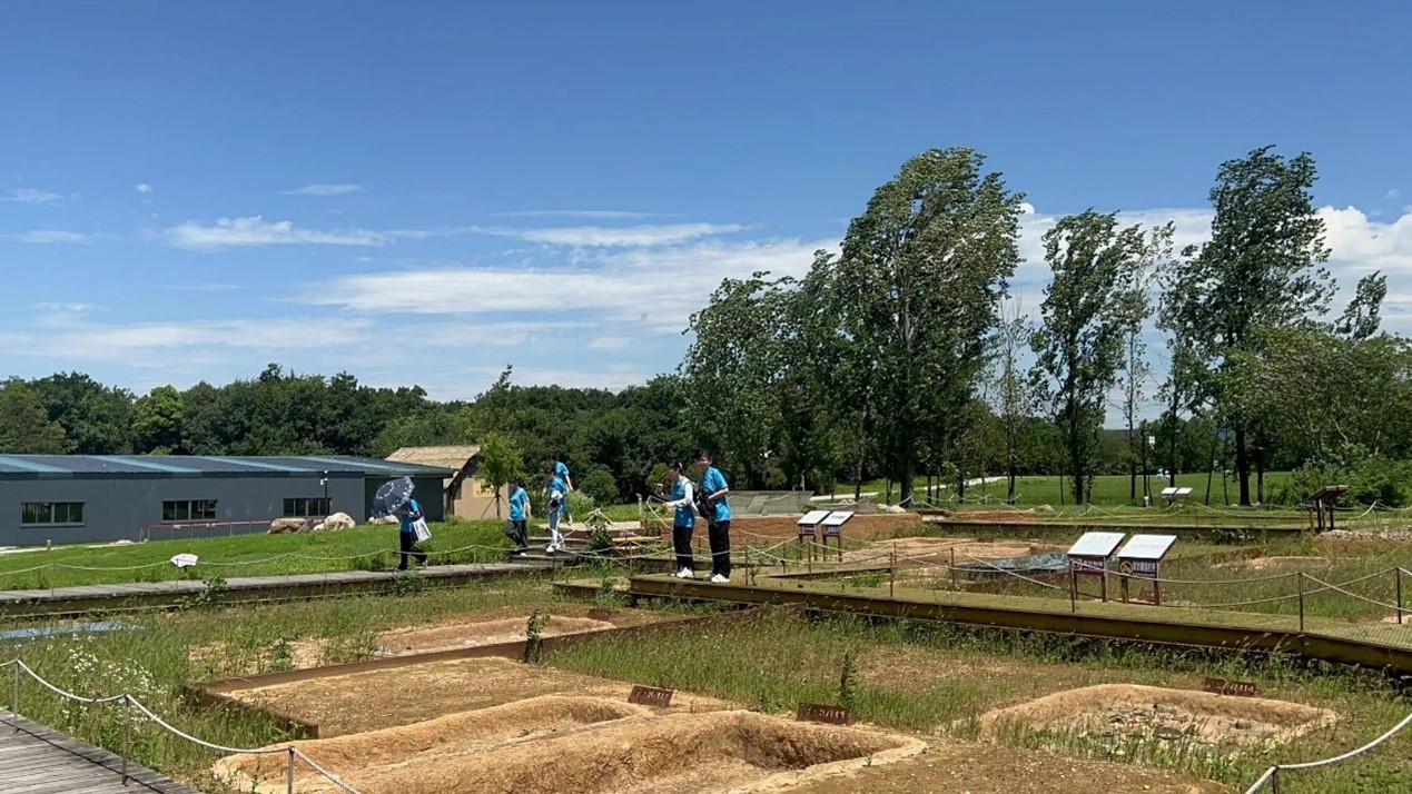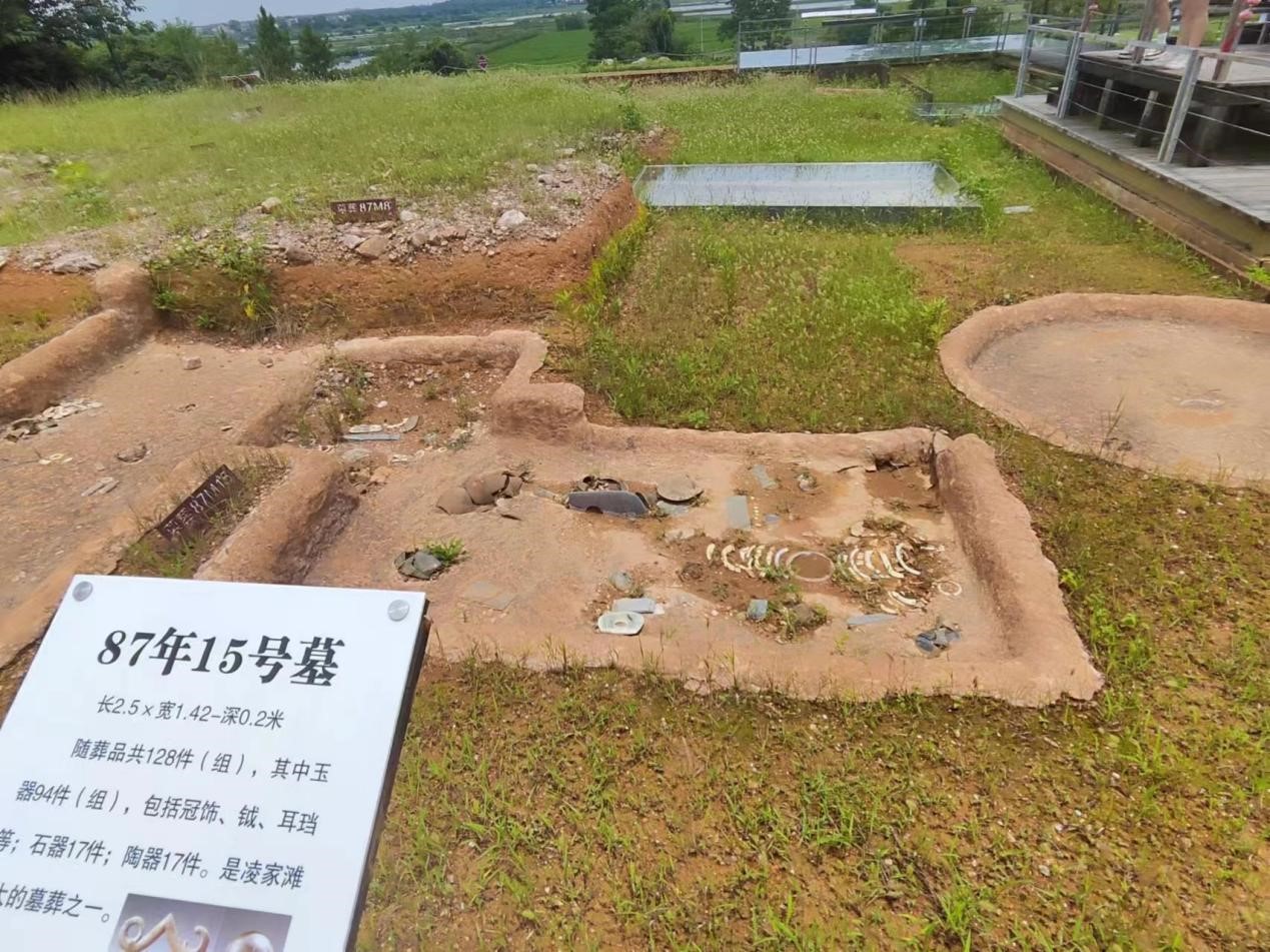 志愿者们之后参观了凌家滩内壕遗址墓葬区,凌家滩遗址是新石器时代晚期的重要聚落遗址,其出土的精美玉器和石器,不仅展示了当时人类高超的技艺和创造力,揭示了古代社会的组织结构和文化特征,更揭示了古人的生活方式、审美观念以及社会等级制度。了解了考古专家不仅在墓地西侧发现了燎祭遗存,揭示了一处大型公共建筑基址,还出土了一批独特的玉石器,其中包括凌家滩目前发现的最大的石钺、最大的玉璜,为深入研究中华文明的起源、形成和发展提供了重要资料。