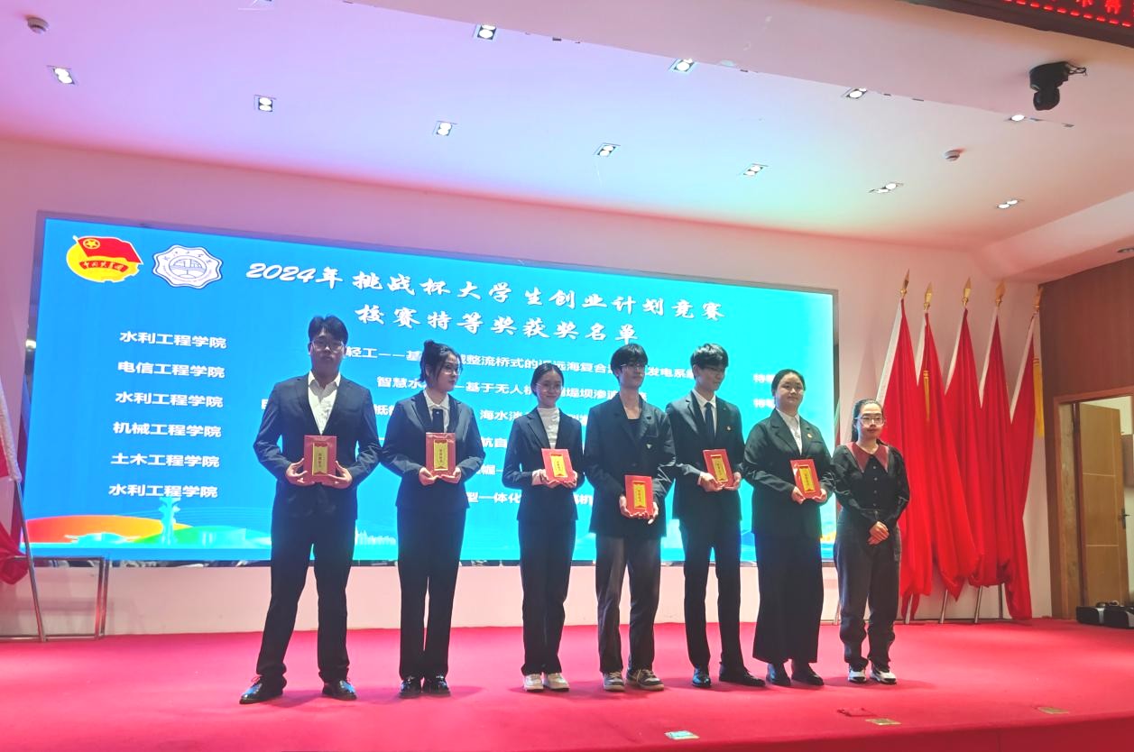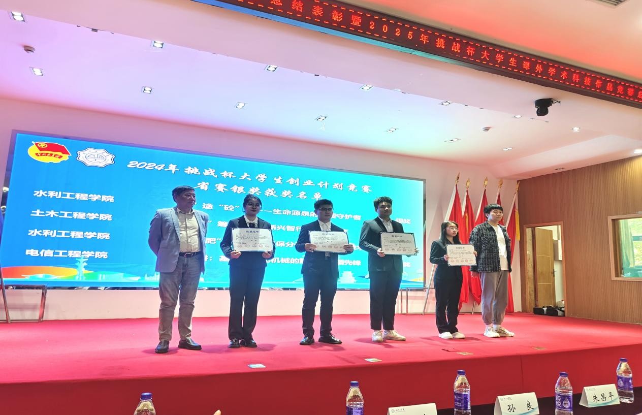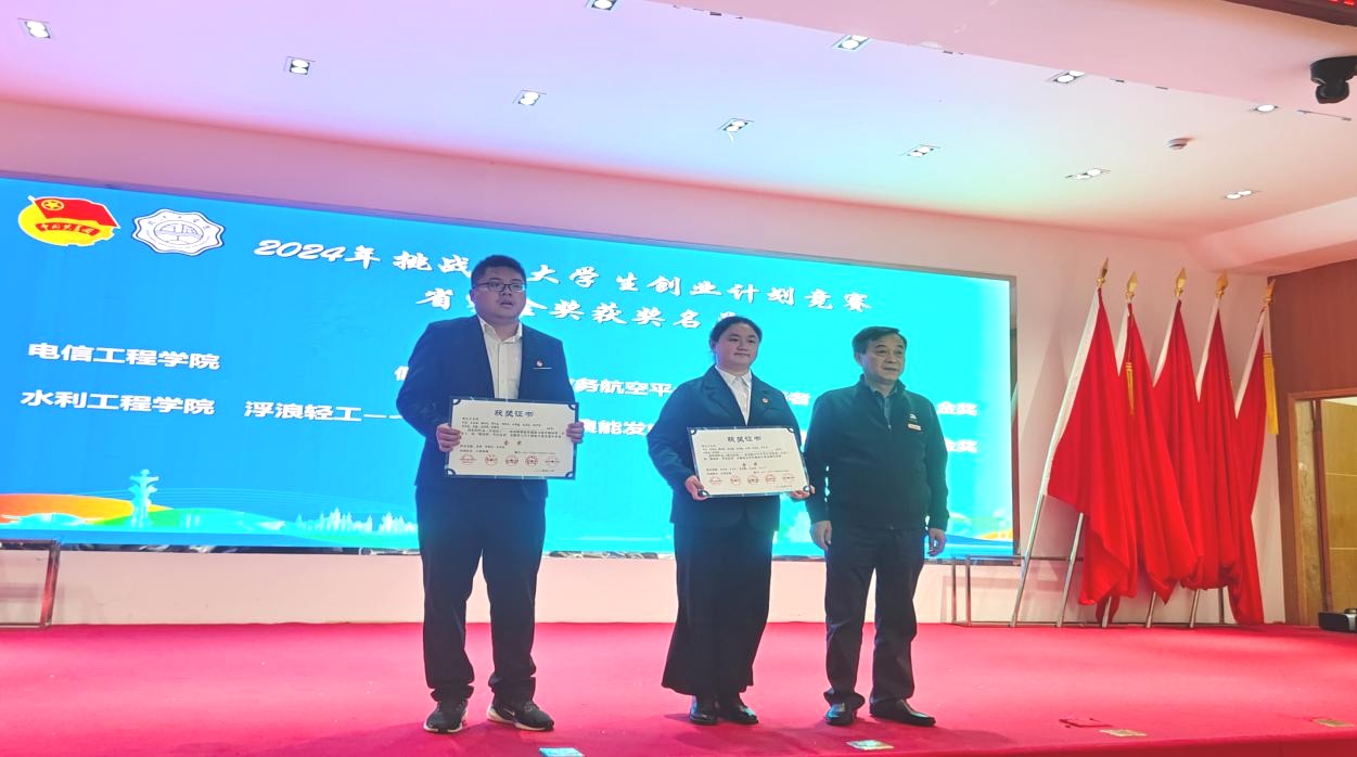 随后,领导老师为2024年挑战杯大学生创业计划竞赛中表现突出的包含2个省级金奖、4个省级银奖、11个省级铜奖,6个校级特等奖、14个校级金奖项目团队进行颁奖。本次,共有2支团队荣获国家级铜奖,实现我校在全国“挑战杯”赛事上的新突破!其中电信工程学院《低空经济——政务航空平台先行开拓者》项目团队获得主体赛国家级铜奖,水利工程学院《浮浪轻工——自适应河流波浪能发电装置引领绿色能源新时代》项目团队获得配套交流活动“秦创原”创新挑战赛国家级铜奖。
