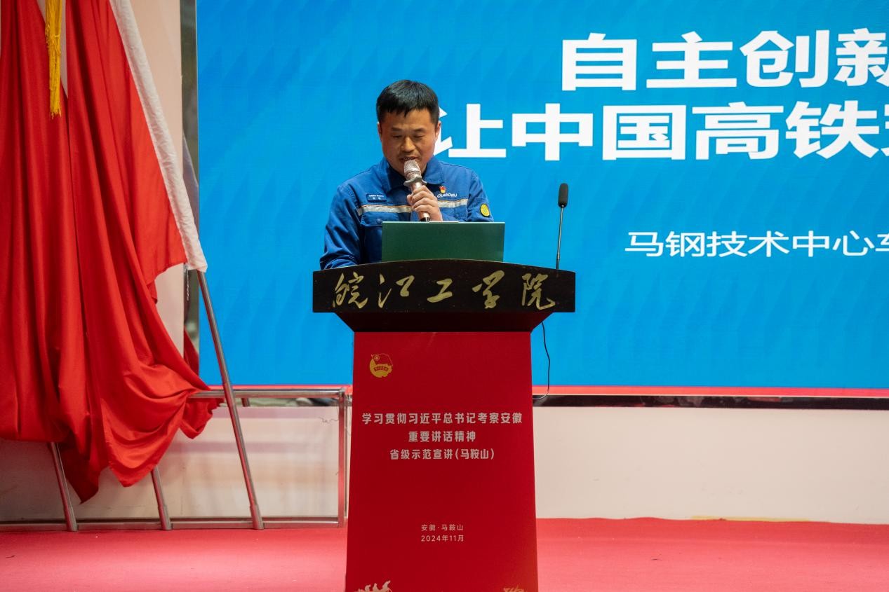 市委党校党史党建教研室黄丹丹老师以《深入学习习近平总书记考察安徽重要讲话精神 全面落实党的二十届三中全会重大改革部署》为主题,市委党校现代科技与管理教研室副主任陈群祥教授以《学习习近平总书记考察安徽重要讲话精神,从“新时代六尺巷工作法”中汲取基层治理智慧》为主题,安徽冶金科技职业学院(马钢教育培训中心)首席师谢志燕以《改革开新局 开放谋新篇——从小岗的世界名片开始说起》为主题,市委党校现代科技与管理教研室教师沈曦以《学习习近平总书记考察安徽重要讲话精神 保护传承利用好凌家滩文化》为主题,马钢技术中心车轮产品技术研究首席研究院、中央企业青联第四届委员会委员赵海以《自主创新,敢为人先,让中国高铁穿上马钢“跑鞋”》为主题开展精彩的宣讲。老师们的报告主题鲜明、内涵丰富、逻辑严谨,既有政治高度、又有理论深度,现场同学们听后深受启发和教育,大家一致表示将牢记总书记的殷殷嘱托,持续在学深悟透、心领神会上下功夫。