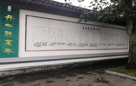 大别山烈士纪念馆的后方就是王步文及其妻子方启坤的墓。墓碑上用浮雕雕刻着王步文烈士的一生,丹心照汗青也是他一生的写照。