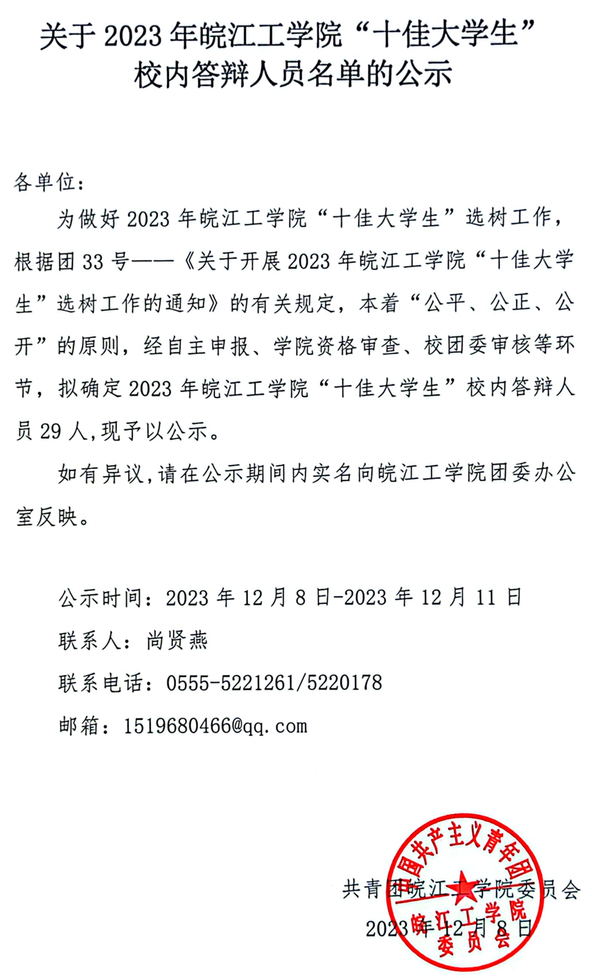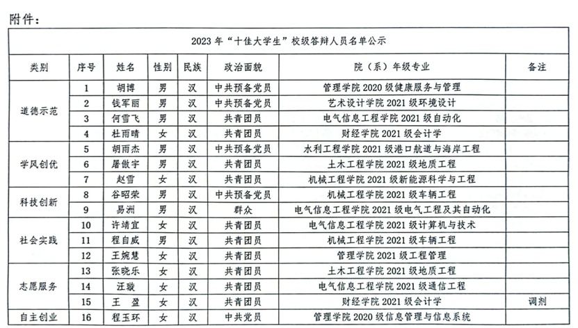 关于2023年18新利怎样“十佳大学生”校内答辩人员名单的公示
