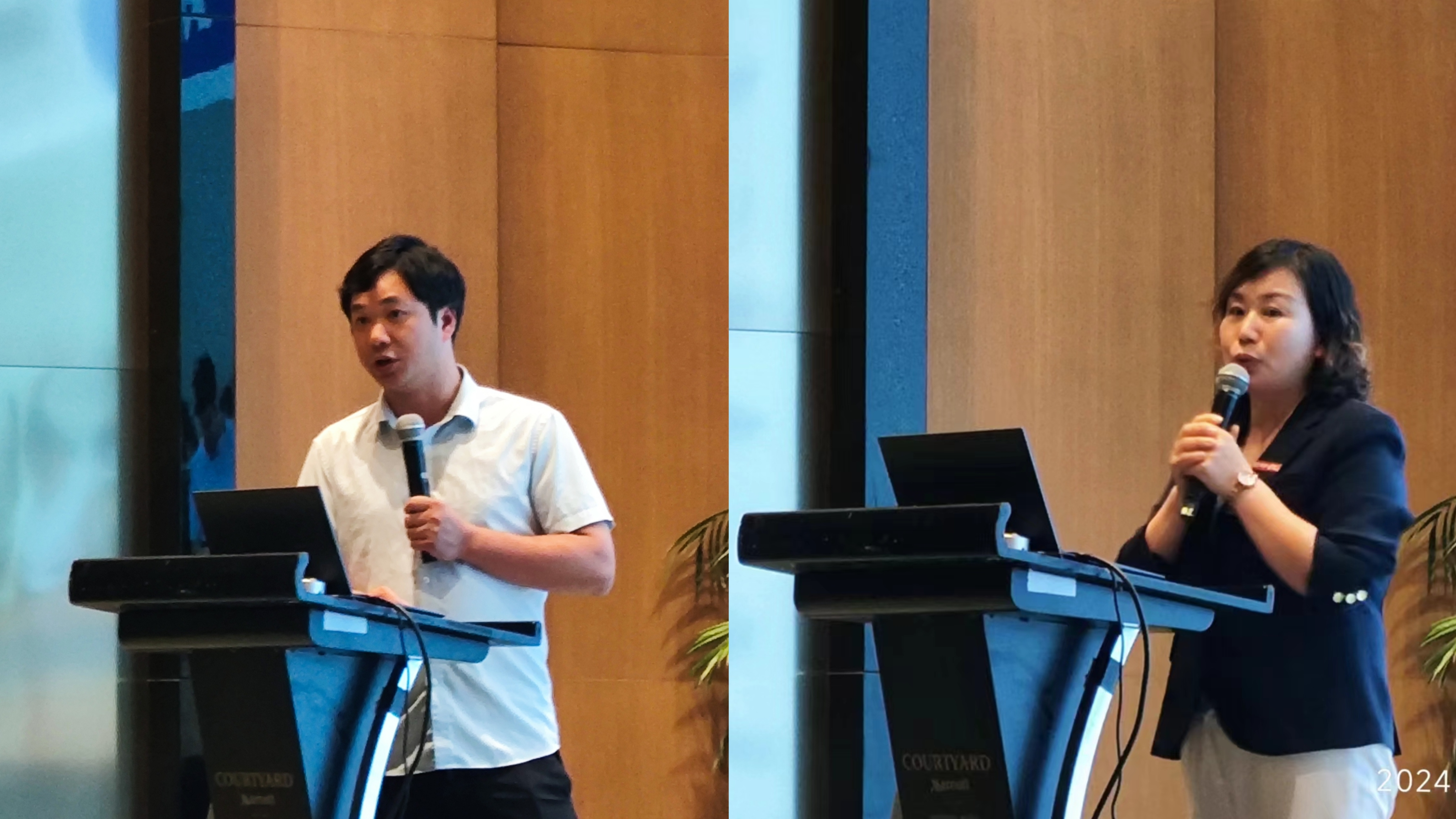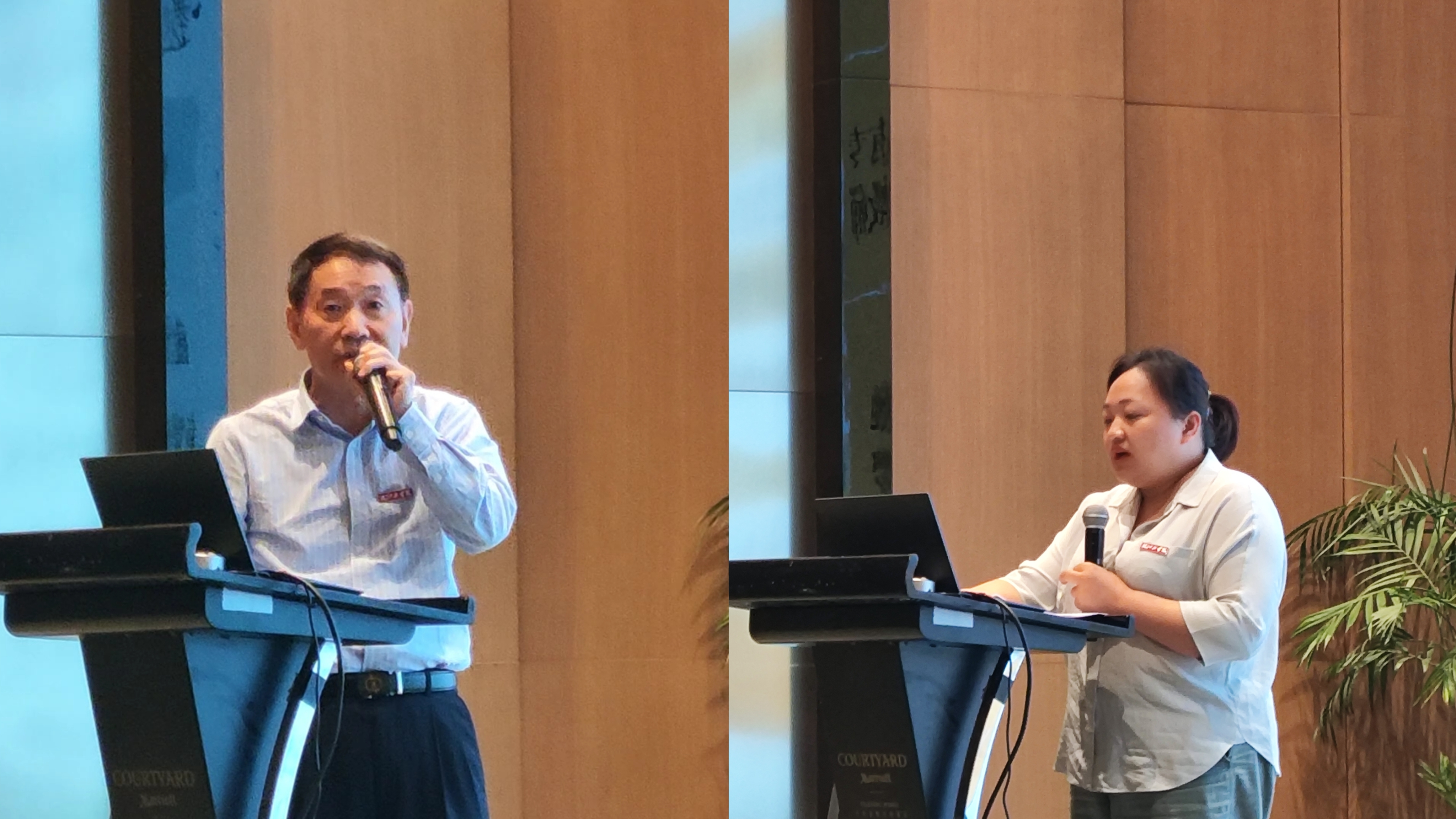 (图4 水利院院长助理田晓丹和基础部外语教研室主任彭饮冰作汇报)