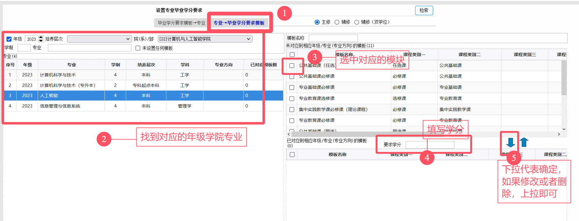 五、请各学院务必重视此项工作,确保学生查询学分取得情况的准确性。10月11日前完成本学院所有年级专业学生的毕业学分要求的设置和核对。