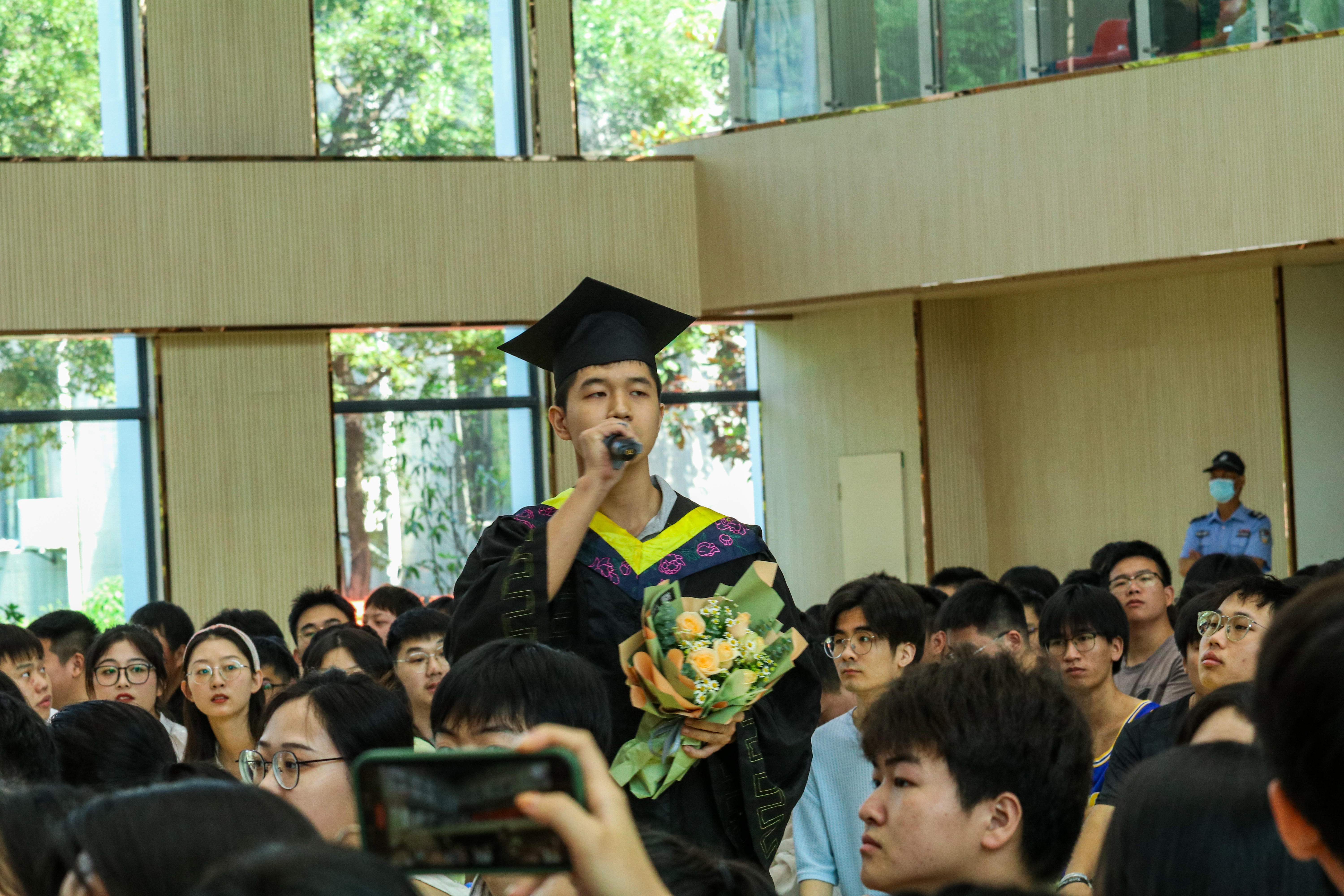 阮怀宁宣读了省级优秀毕业生表彰名单,并勉励毕业生们在今后的学习和生活中要积极进取、努力拼搏、激情澎湃、超越自我,积极为实现中华民族伟大复兴做出贡献,创造精彩人生。