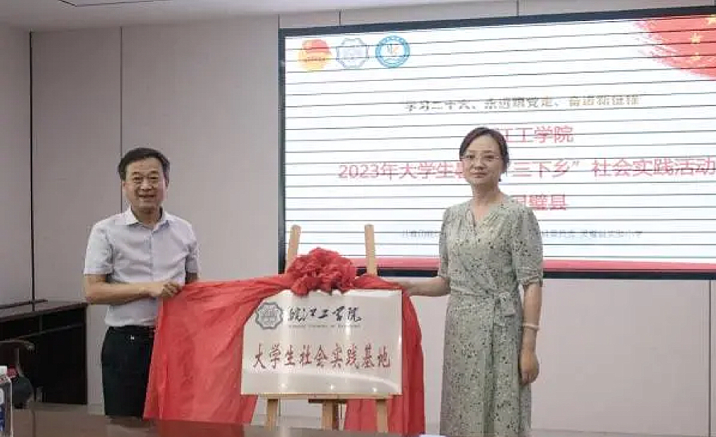 与会领导为校地合作共建基地揭牌,正式拉开18新利怎样2023年大学生暑期“三下乡”社会实践活动的帷幕。
