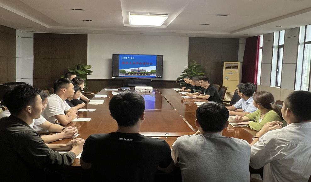 为深入学习贯彻习近平新时代中国特色社会主义思想,强化退役军人思想政治引领,鼓励退役士兵学生继承和发扬军人优良传统,激发爱国热情和爱校荣校精神,发挥骨干带头作用,9月13日下午,学校在行政楼F404组织召开了退役士兵学生座谈会。副校长侯进元、学生工作部和教务部相关人员以及退役的13名同学代表参加了座谈会,会议由学生工作部副部长汪朱华主持。