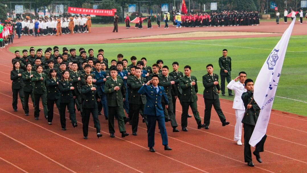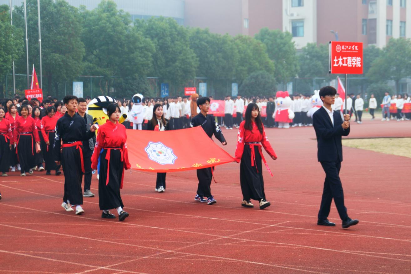 运动会开幕式在激昂的进行曲和热烈的欢呼声中正式拉开帷幕。开幕式伊始,校旗队、会徽队、鲜花队迈着铿锵的步伐依次入场。退伍士兵、教职工及八个二级学院代表队组成整齐有序的方阵,他们别具一格,百花齐放,喊着嘹亮的口号,踏着矫健的步伐向主席台走来,展示着新利体育手机端官网登录入口学子蓬勃向上的精神风貌和英姿飒爽的青春风采。