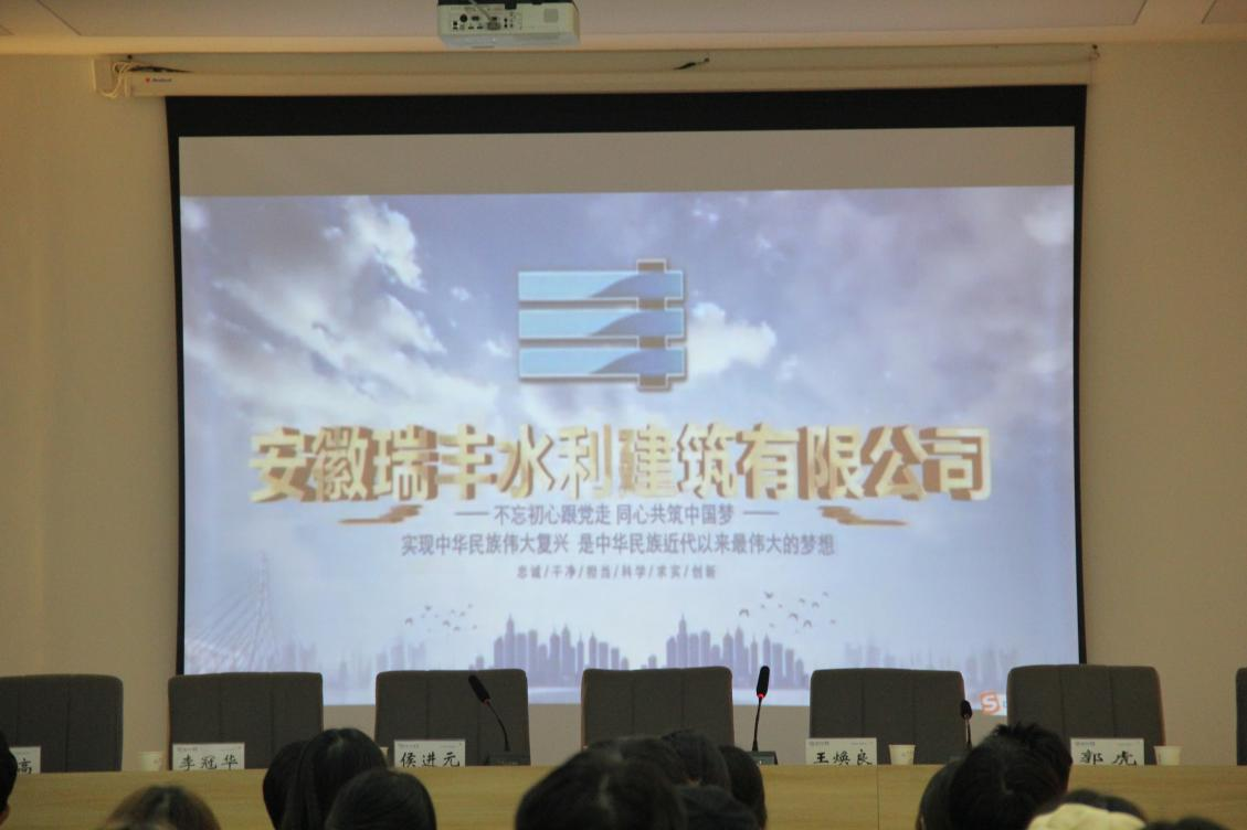 王焕良简单介绍了安徽瑞丰水利建筑有限公司的相关情况,并播放了相关宣传片。随后,校企双方签订了“瑞丰奖学金”捐赠协议。