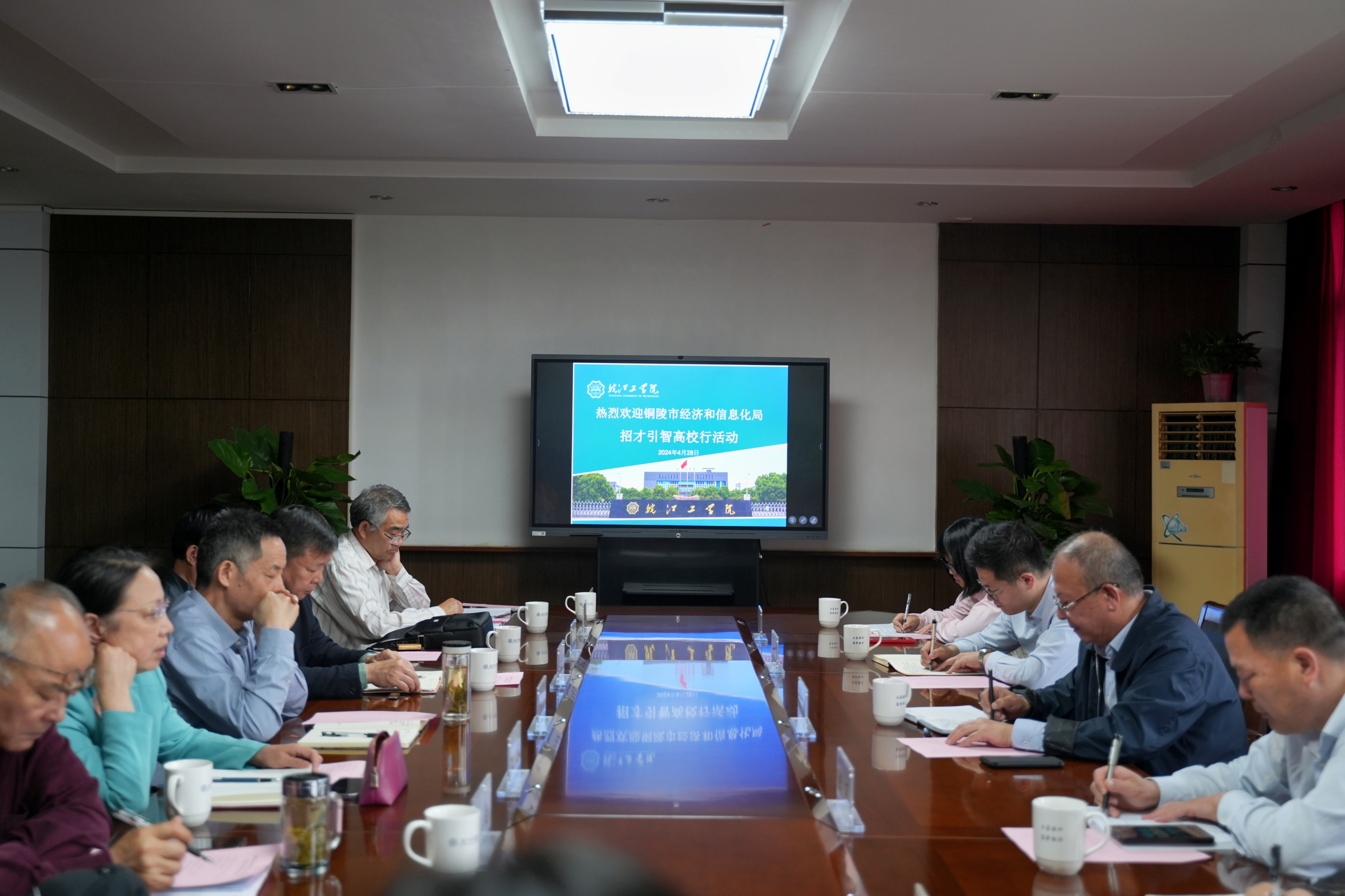 4月28日上午,铜陵市经济和信息化局来我校“招才引智”,会议在霍里山校区行政楼404举行。铜陵市经济和信息化局党组书记、局长李勇,党组成员、副局长汪平,市中小企业发展局局长张伟,经济和信息化局人事科科长张云、办公室主任袁耀华、办公室一级科员盛远,我校党委书记丁家云,副校长侯进元、王志,教务部部长江冰,学生工作部常务副部长汪朱华以及各二级学院党总支书记出席此次会议。会议由副校长侯进元主持。