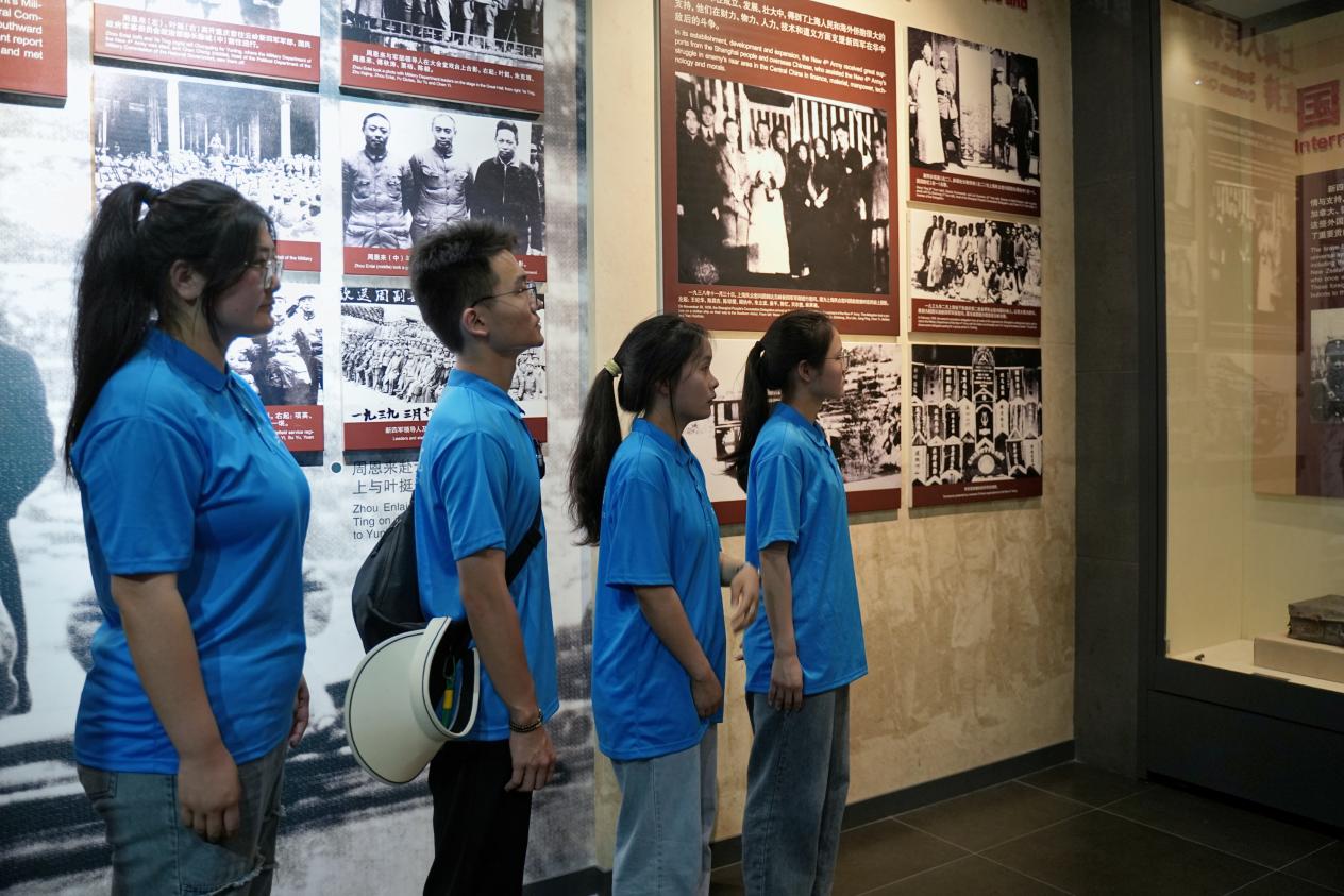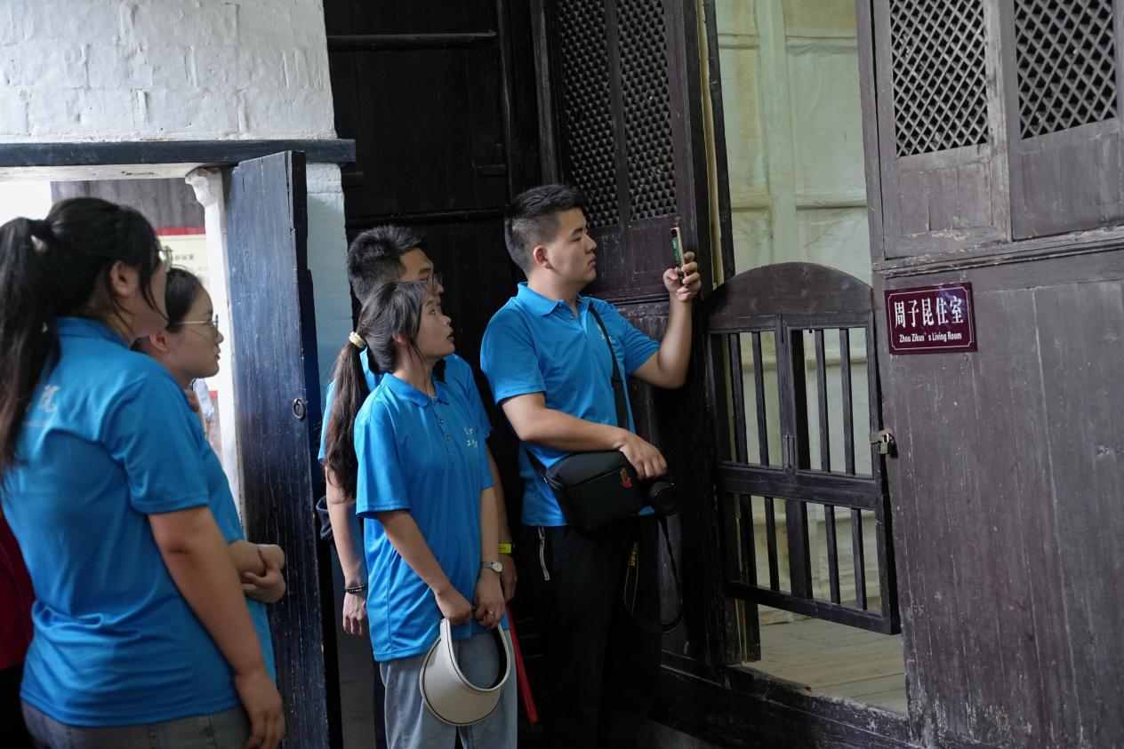 随后,团队来到了旧址后花园,后花园的位置形如甲板,一方池塘蓄房屋内的流水,还有一口井用来取生活用水。当团队来到新四军军部旧址大会堂及陈列馆,走进这座大会堂,仿佛能穿越时空,回到那个激情燃烧的年代,周恩来总理在此做了长达四个小时的战时演说,在陈列馆内,沈老师讲述了皖南事变的全部发生过程以及新四军在抗战期间的战略和战斗走势。
