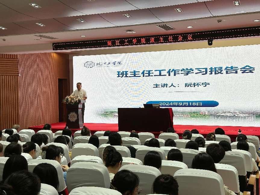 为了积极响应党的教育方针,深刻学习领会并贯彻落实党的二十届三中全会精神,进一步强化立德树人的教育目标,促进学生思想政治教育管理工作的创新与优化,提升班主任队伍的整体素质与专业能力。学校学工部分别在9月11日、18日下午分别举办了2024-2025学年班主任工作学习报告会,报告会在霍里山校区图书馆报告厅进行。学生工作部负责人、全体班主任参加此次培训,我校党委副书记孙良和副校长阮怀宁出席并在会上作报告。