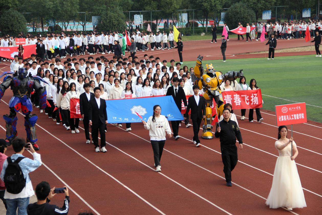 伴随着雄壮的运动员进行曲,校旗队、会徽队、彩旗队依次入场,步伐铿锵有力。随后,教职工及八个二级学院代表队组成的方阵踏着矫健的步伐向主席台走来,展示了18新利怎样师生蓬勃向上的精神风貌和青春风采。