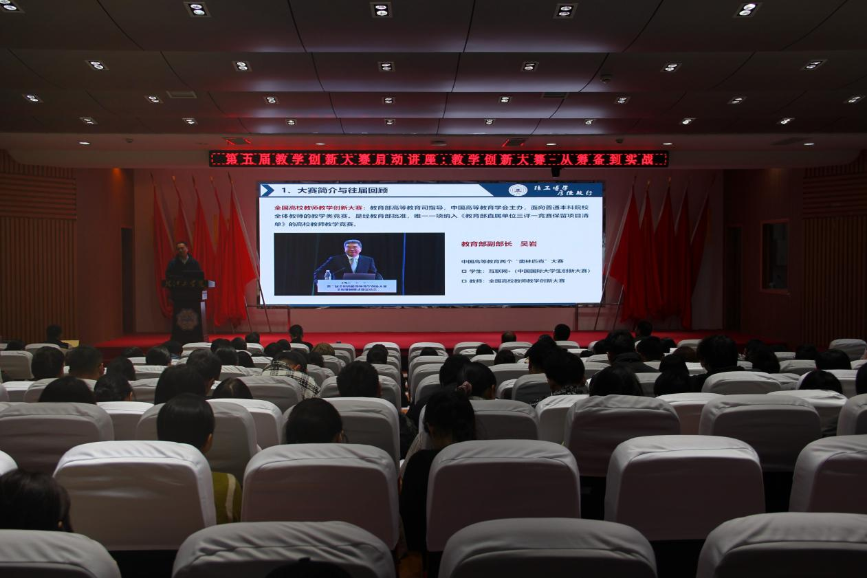 第五届全国高校教师教学创新大赛开赛在即,为帮助我校教师筹备比赛、积累经验,11月7日,学校教务部邀请了全国高校教师教学创新大赛一等奖获得者、国家级一流本科课程负责人、安徽省教坛新秀、安徽工业大学姚永林副教授莅临我校霍里山校区图书馆报告厅为大家开展教学经验分享讲座。此次创新大赛启动讲座倍受瞩目,我校全体教师到场共同参与聆听学习,副校长阮怀宁主持讲座。