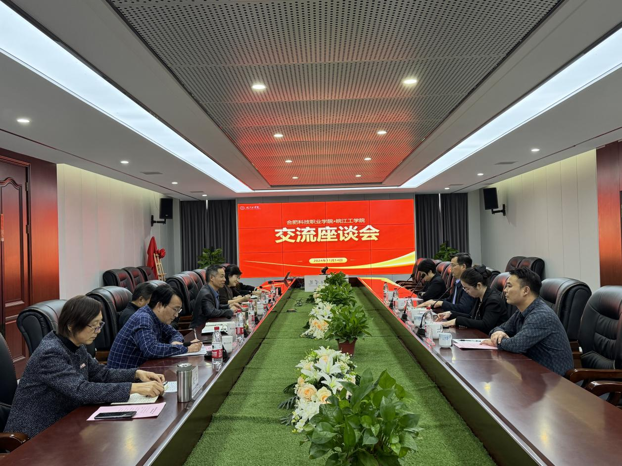 汤仲胜对我校发展过程中取得的成绩给予了充分肯定和称赞,他就合肥科技职业学院办学情况与此行目的作了简要介绍。随后,双方就相关工作进行了深入细致的探讨与交流。
