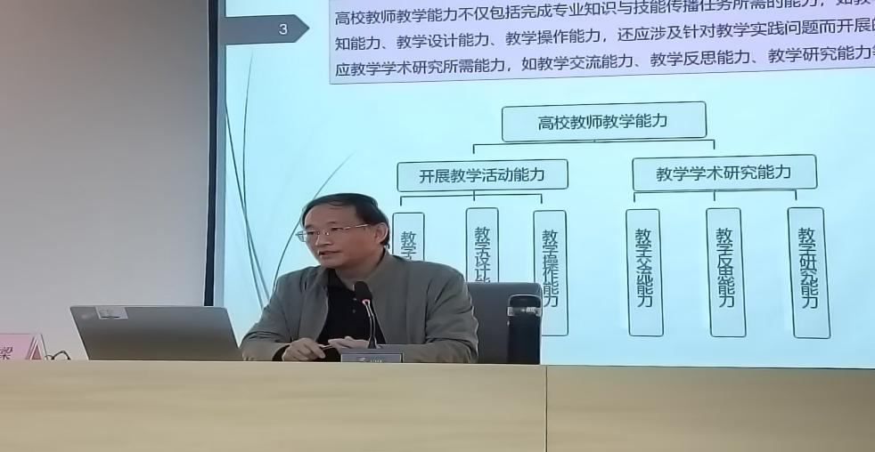 堵国樑以“青年教师实践教学能力提升探究”为题,从教师教学能力的内涵、实践教学能力的重要性、提升实践能力的路径等三个方面详细阐述,围绕教学的认知能力、设计能力、操作能力、交流能力、反思能力、研究能力等六个方面介绍了教师教学能力的内涵,分析了以学生为中心、问题导向、创新性的实践教学核心理念,强调了知识基础、教学设计、沟通能力在实践教学中的重要性。最后,堵国樑联系我校实践工作实际,立德树人的教育根本宗旨、授人以渔的教学核心策略、扎实稳固的教学基本功以及精心构思的教学设计等重要方面探究了青年教师实践教学能力提升路径。