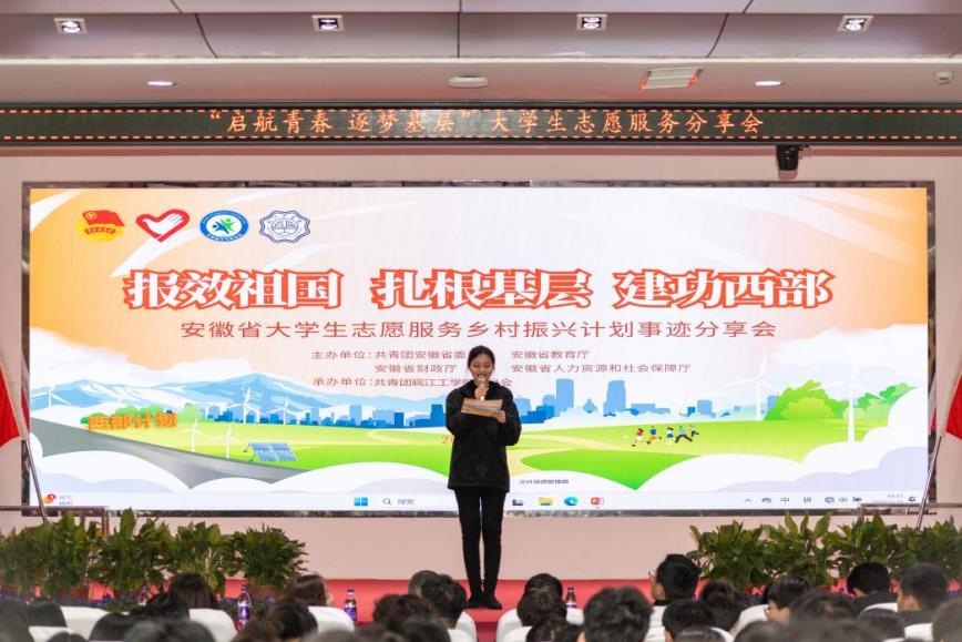 本次“启航青春 筑梦基层”大学生志愿服务乡村振兴计划事迹分享活动,围绕2025—2026年度大学生志愿服务西部计划、安徽省大学生志愿服务乡村振兴计划招募等内容组织志愿者代表开展事迹分享活动,旨在学习贯彻党的二十大精神,弘扬“奉献、友爱、互助、进步”的志愿服务精神,进一步宣传西部计划志愿者先进典型,推动西部计划项目赋能增效、提质扩面。