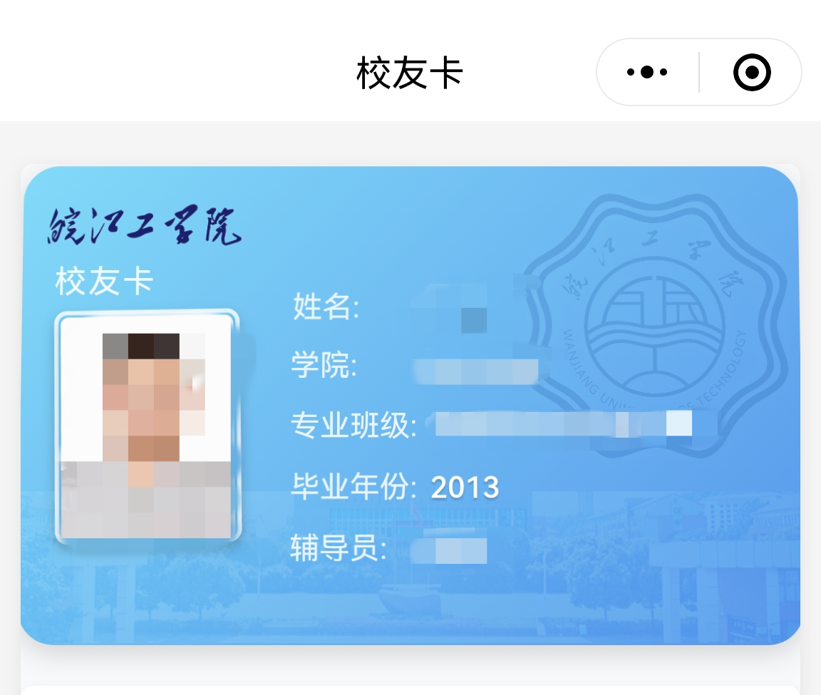 2012届以来的毕业校友可直接在小程序内完成认证、领取电子校友卡;