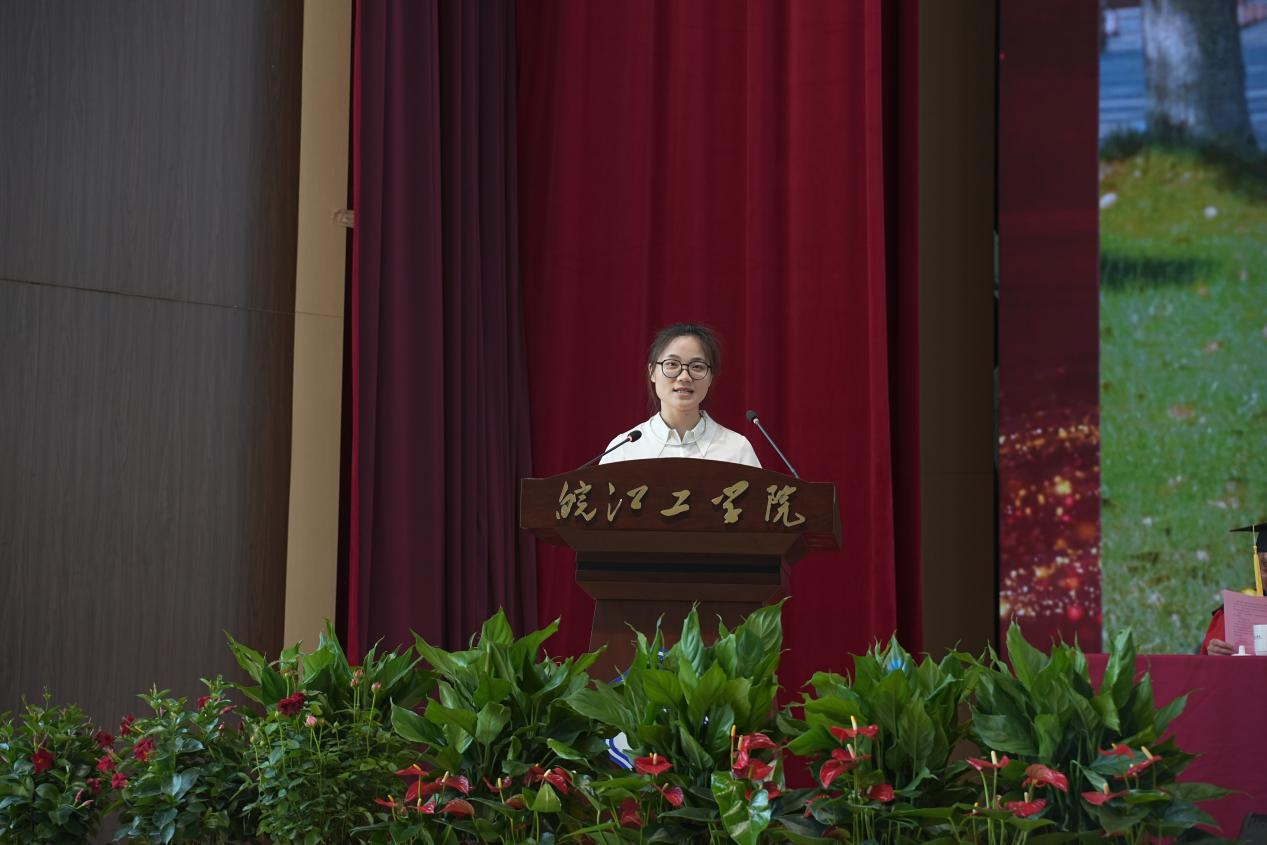 尤红岩作为学生家长代表发言,她动情地分享了孩子大学四年的蜕变,从依赖父母的少年,成长为独立自信的青年,都离不开学校的悉心培养。她感谢学校对孩子的悉心栽培,感谢老师的谆谆教诲,希望孩子们饮水思源,铭记母校恩情,最后祝愿学校桃李芬芳、再创辉煌。