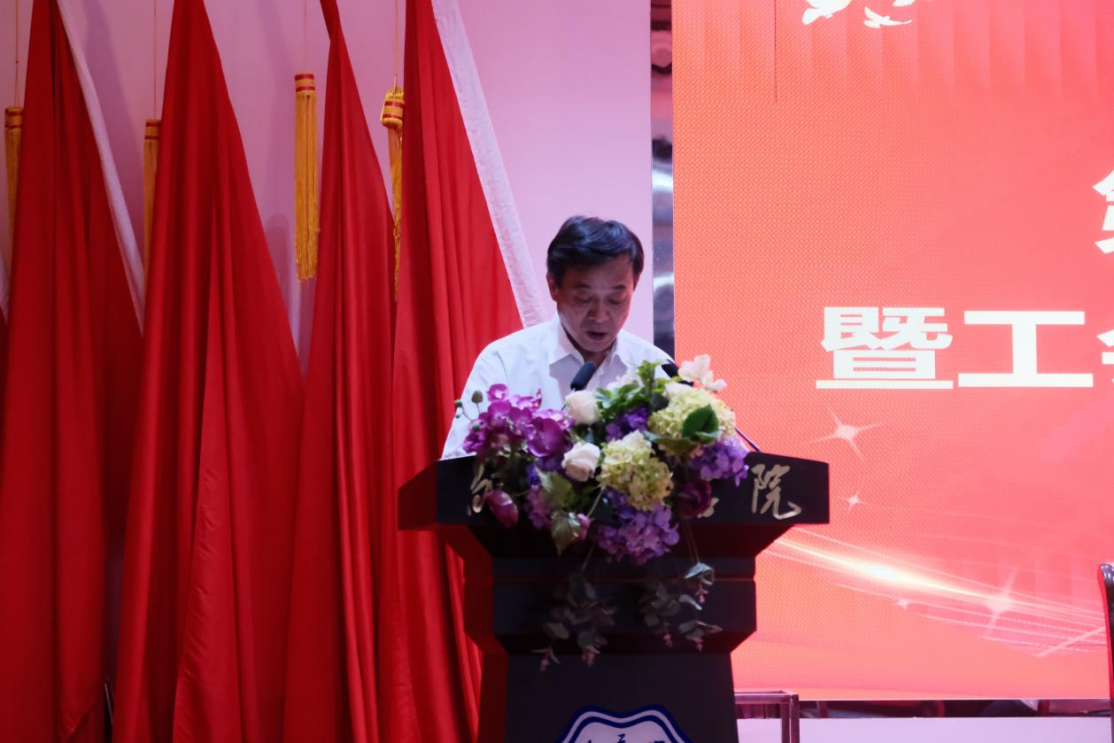 党委书记丁家云讲话。丁家云指出,过去的一年,学校在全体教职工的共同努力下,各项事业取得了显著的成绩。在今后的工作中要始终坚持党的领导,确保正确办学方向,要把思想建设放在首位,落实立德树人根本任务。要以更加饱满的热情、更加昂扬的斗志、更加务实的作风,共同谱写学校发展新篇章。