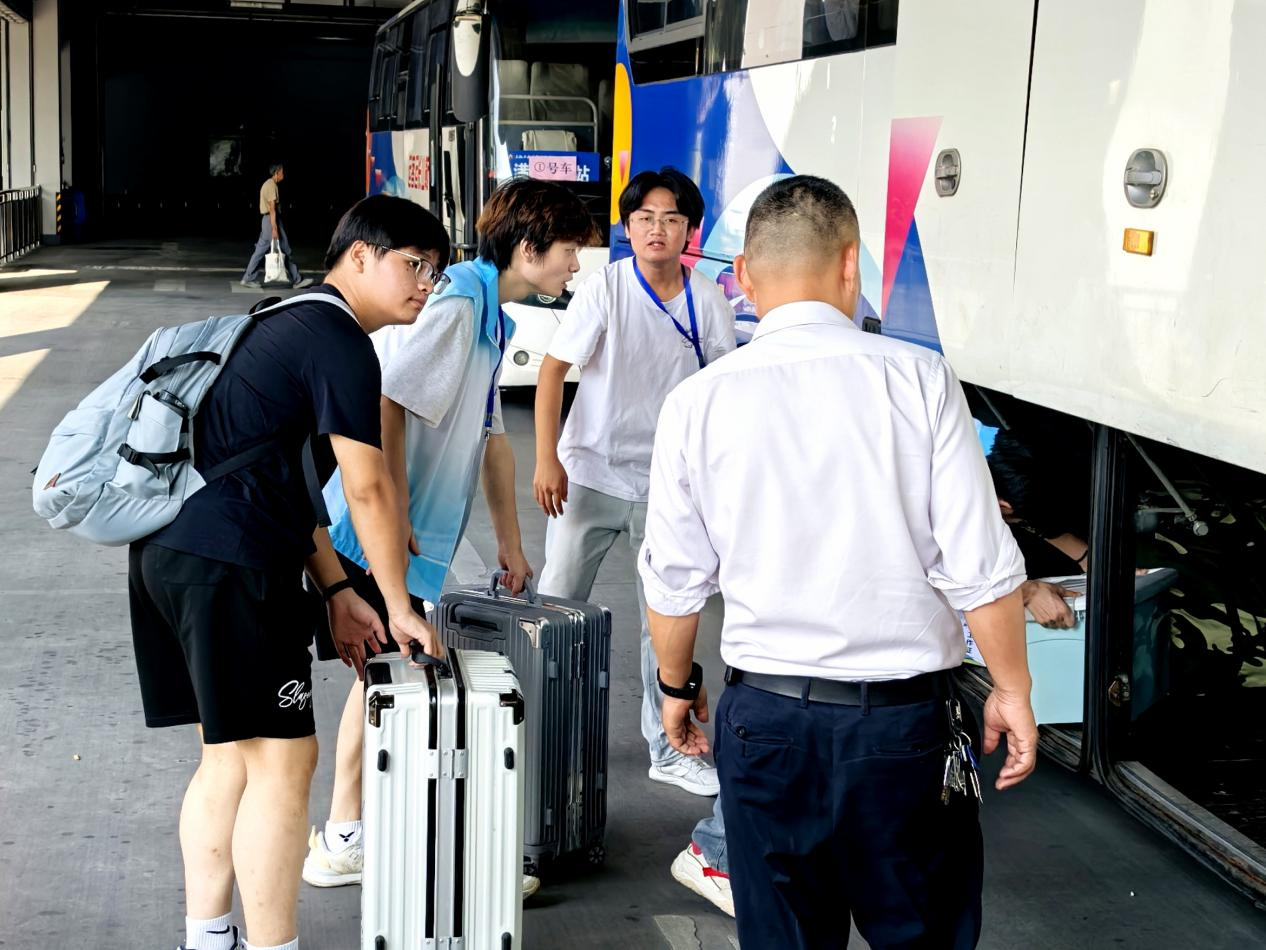 为让新生从踏入马鞍山的那一刻起就感受到“家的温度”,学校提前统筹各二级学院、相关部门教职工和迎新志愿者的力量,将细致服务贯穿迎新全程。在马鞍山东站、新利体育在线官网首页登录入口各报到接待点,教职工与迎新志愿者早早到位等候,专属迎新大巴循环往返,从清晨到深夜不间断提供免费接送服务,全力打通新生从车站到宿舍的“最后一公里”。