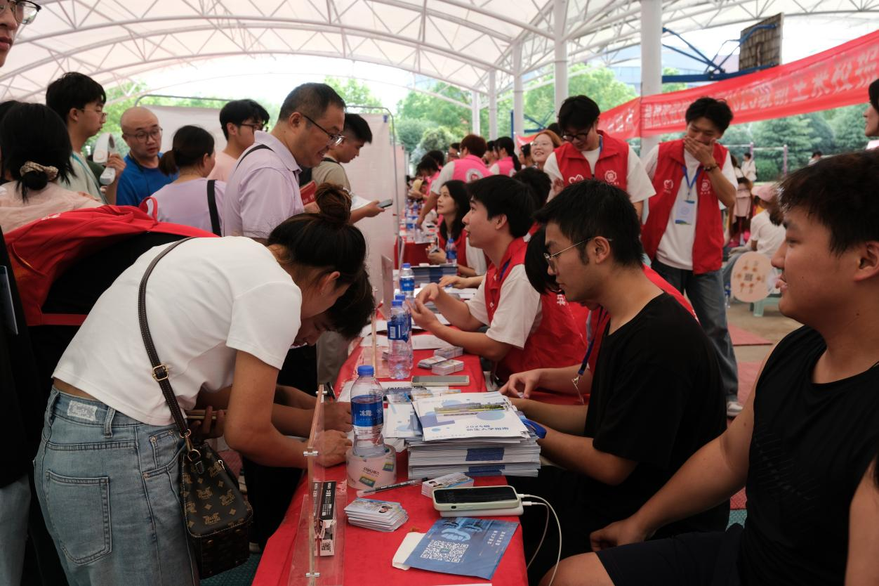 今年迎新,学校更在细节处彰显人文关怀——各学院报到点均设置在搭好顶棚的篮球场内,让新生及其家长在烈日下也能感受到阵阵凉意;校园门口增设免费绿豆汤服务点,主干道两侧则增设乘凉帐篷等降温设施。保温桶里的绿豆汤清甜解暑,志愿者们主动为拎着行李的新生和家长递上饮品,“天有点热,喝碗绿豆汤解解渴”的贴心话语,搭配着绿豆汤清爽的口感,瞬间驱散了初秋的燥热。此外,学校还提前预判客流高峰、天气变化等情况,安排专人对接车站、调配车辆,并备齐饮用水、应急药品、行李搬运工具,让每一项服务都落到实处。