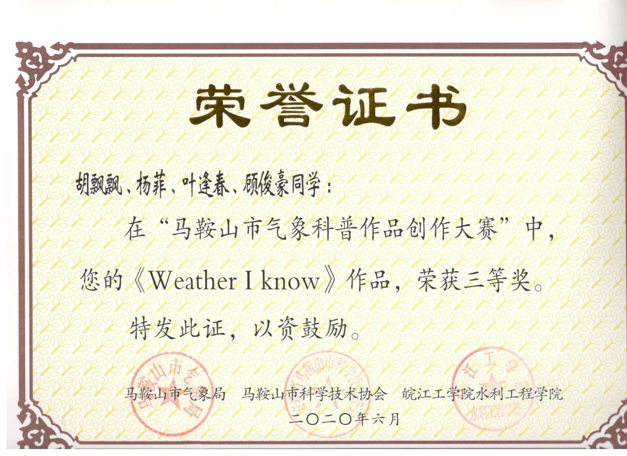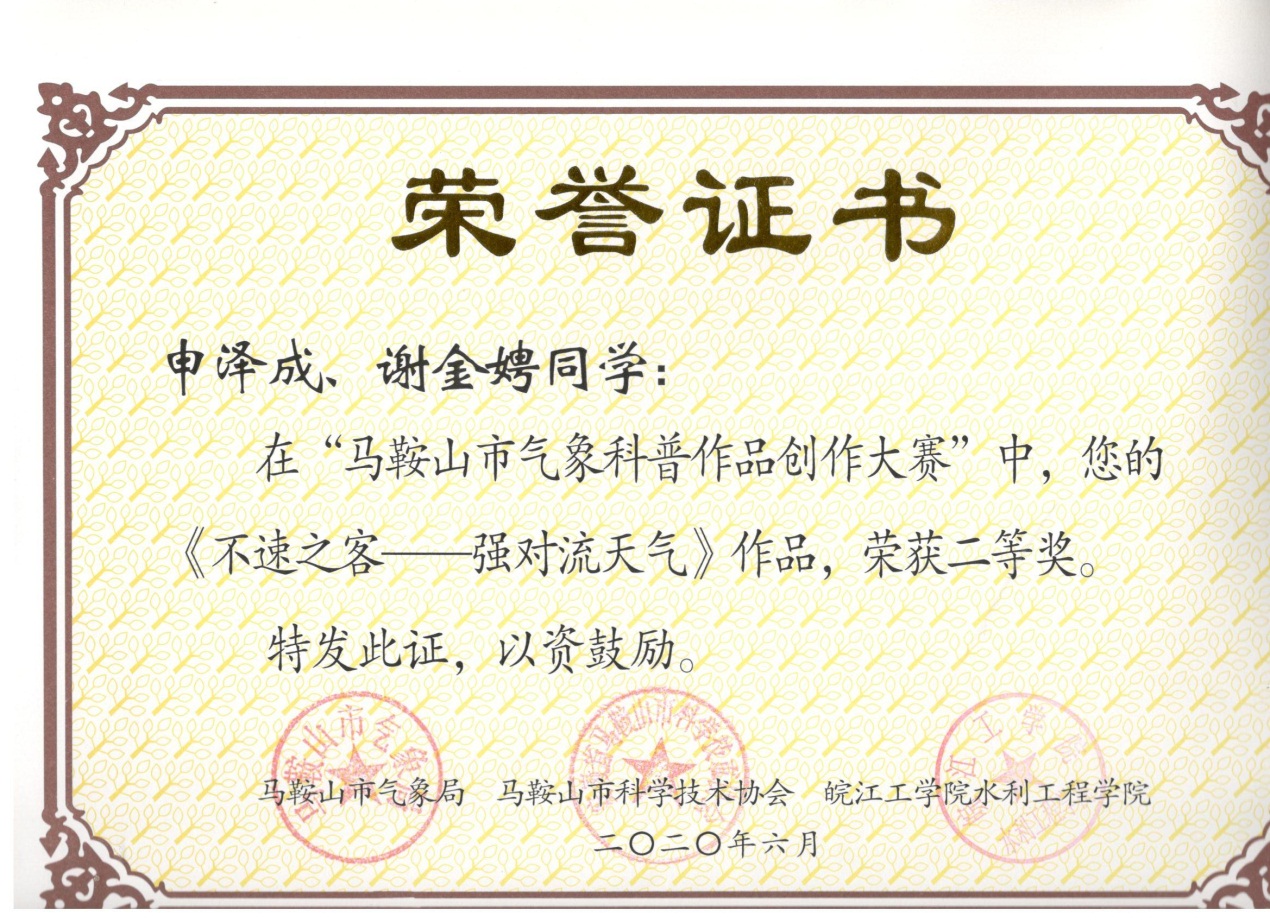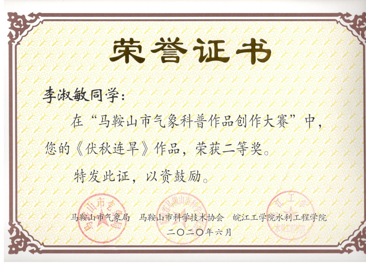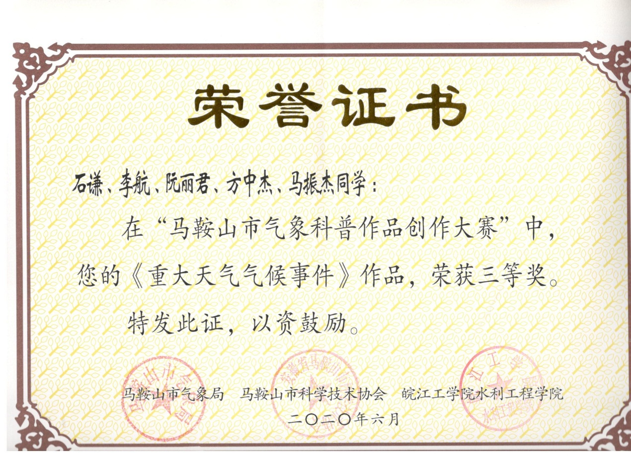 我校水利工程学院学生在马鞍山市气象科普作品创作大赛中斩获多个奖项