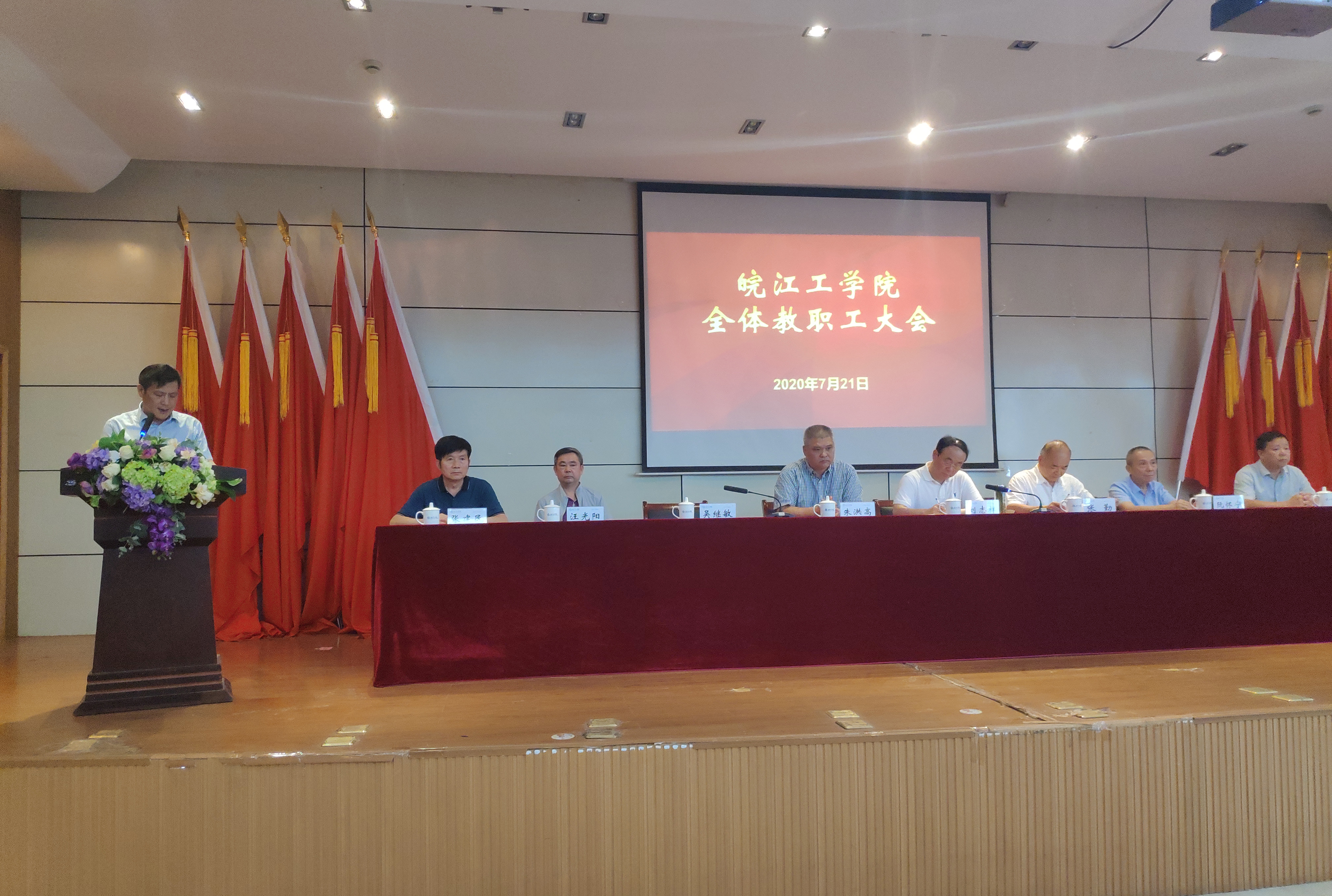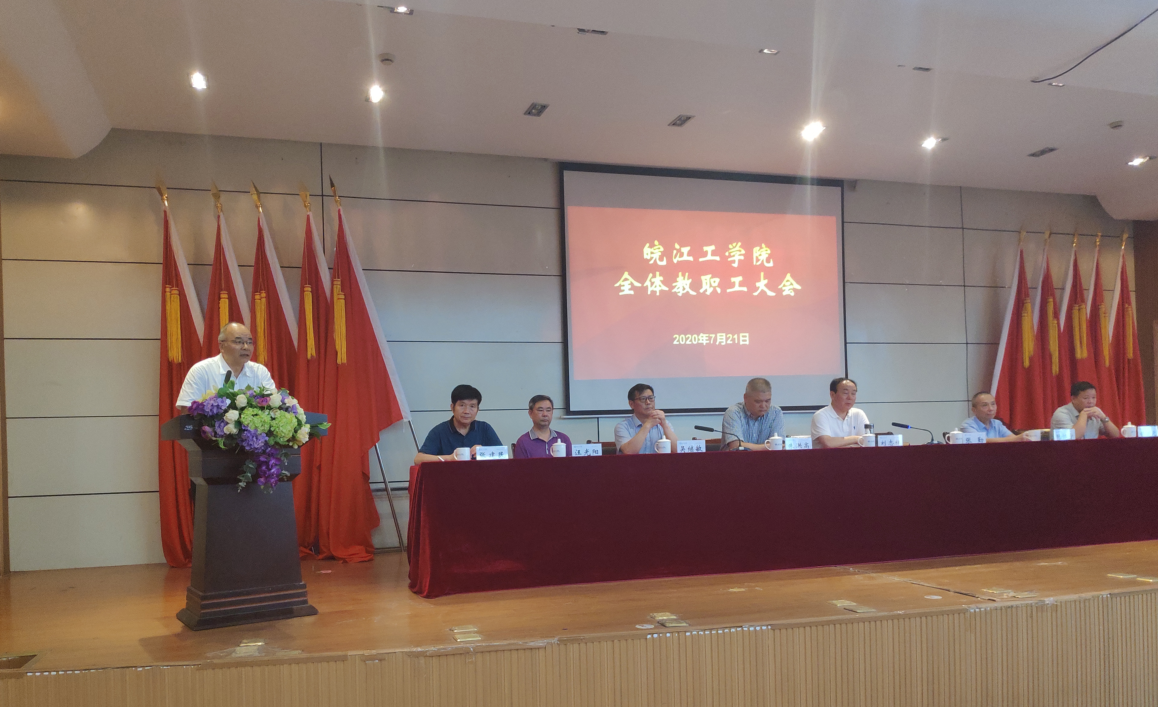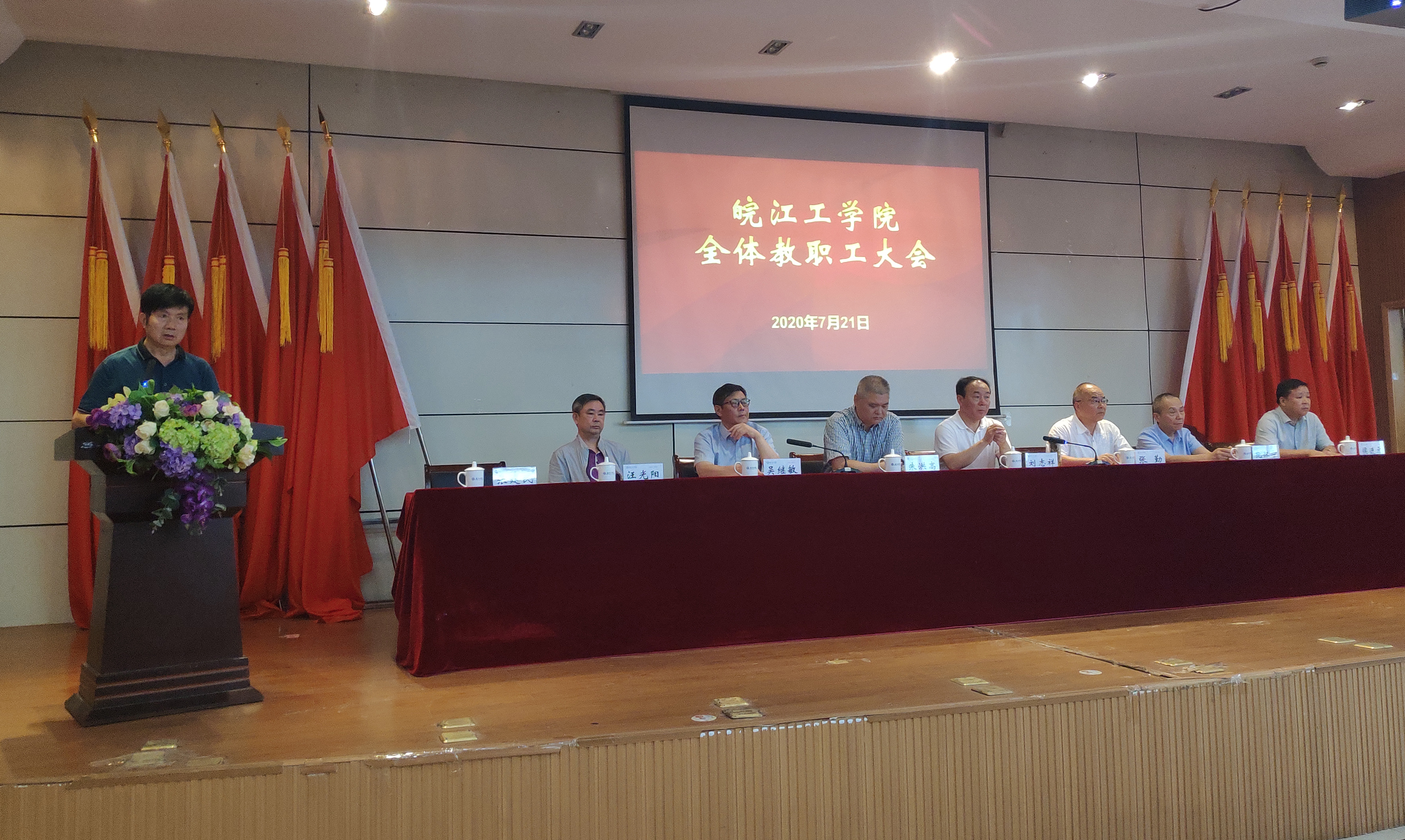 7月21日下午,我校在图书馆报告厅召开全体教职工大会。董事长朱洪高,党委书记刘志祥,校长吴继敏等校领导出席会议,全体教职工参加会议。会议由副校长张建民主持。