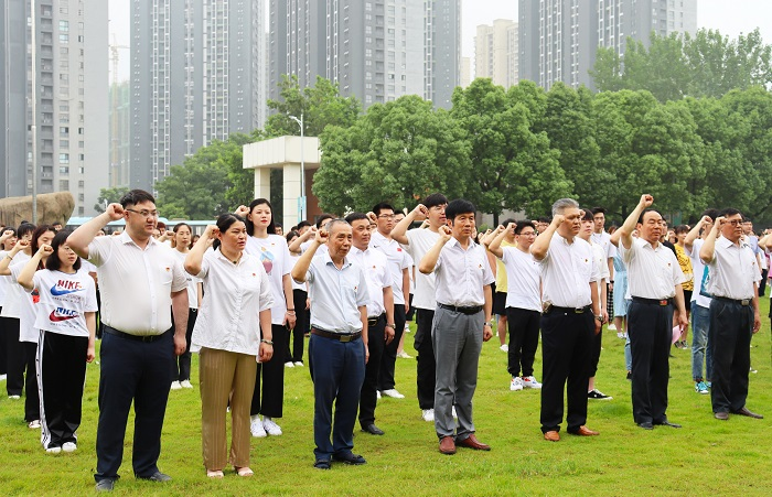 6月18日,18新利怎样举行新党员集体宣誓仪式。董事长朱洪高,督导专员、党委书记刘志祥,党委副书记、校长吴继敏,党委副书记张勤,党委委员、副校长汪光阳、张建民、朱建芬、侯进元,副校长阮怀宁,党委委员伍旭坤、王志,各党总支、直属党支部书记(副书记),新发展入党的共产党员参加了本次活动。大会由张勤主持。