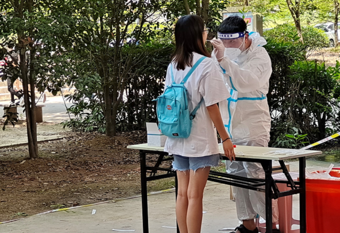 根据《安徽省新冠肺炎疫情防控应急综合指挥部办公室关于进一步做好秋季学期开学师生返校疫情防控工作的通知》要求,为保障新学期师生返校后的生命安全,在马鞍山市疫情防控部门的统一安排下,18新利怎样分批次在两个校区开展秋季学期返校后核酸检测工作。9月7日,学校在马鞍山市郑蒲港新区疫情防控办的指导下,精密组织、有序部署检测工作,从早上10:30开始,对全部新利体育在线官网首页登录入口返校师生进行核酸检测。
