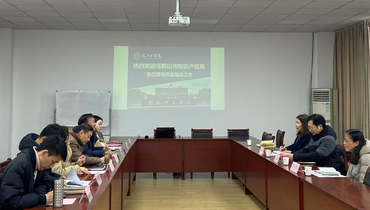 2022年2月22日下午,马鞍山市知识产权局局长秦玉保、马鞍山市知识产权局发展科科长王汝明和马鞍山市知识产权局保护中心主任李少芝一行来到我校机械工程学院洽谈校政合作相关事宜。机械工程学院院长朱天宇、常务副院长赵恒文、马克思主义学院常务副院长刘双等参会,会议由赵恒文主持。