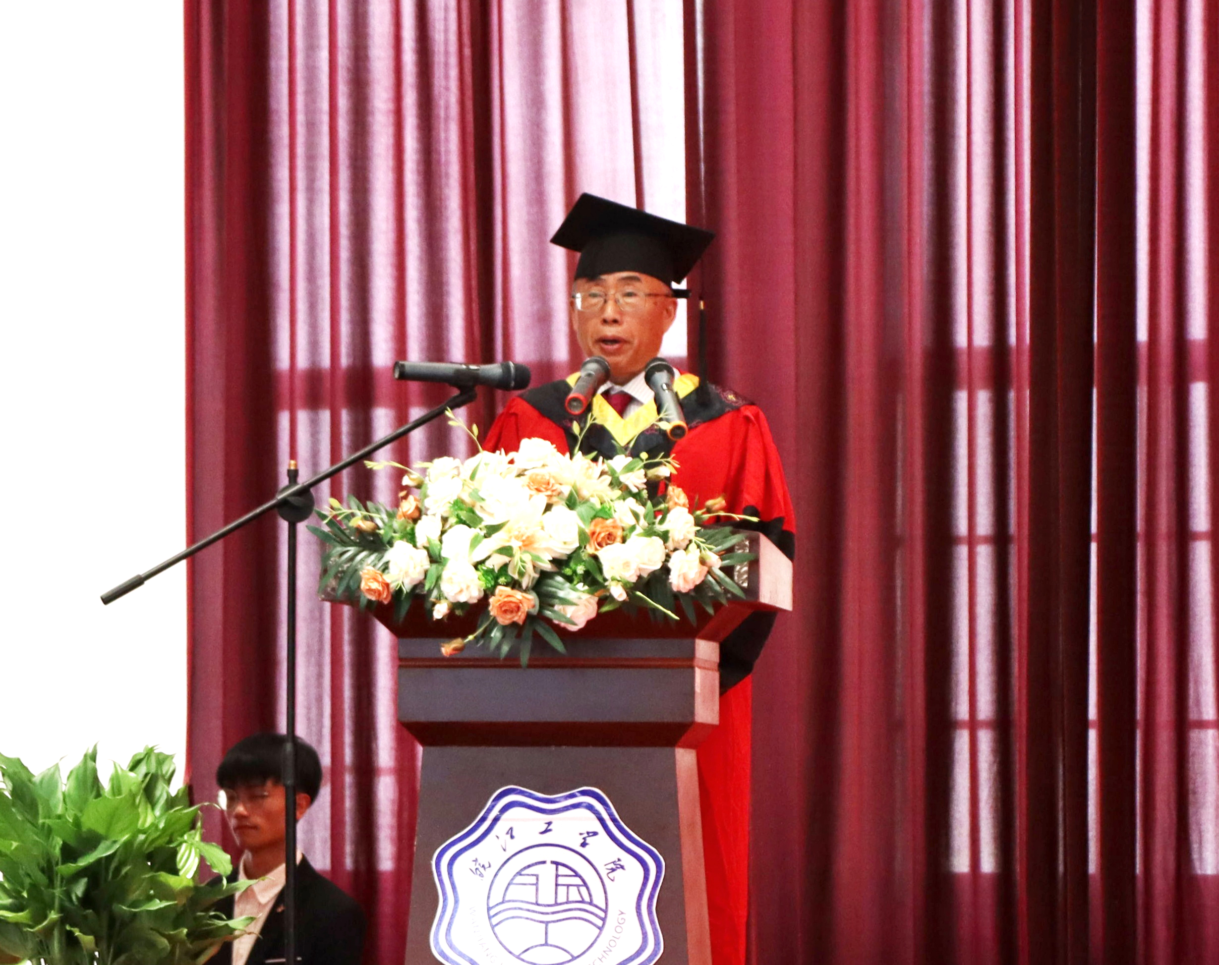 伴随着慷慨激昂的国歌,毕业典礼正式拉开序幕。吴继敏在毕业典礼上对2022届毕业生深情寄语。他感谢毕业生们为母校发光发热,代表学校向即将踏上人生新征程的全体毕业生表示祝贺。希望同学们不忘初心,追逐梦想,树立坚定的人生目标,坚定自己的理想信念,心中有梦、不断奋进,这才是应有的人生态度;希望同学们持之以恒,踏实向前,只要耐得住寂寞、坚持踏踏实实走好每一步,人生的发展空间一定会无限广阔;希望同学们独立思考、保持自我,把张扬的个性转变为人格的独立与健全,把纯真的情感转化为内心的丰盈与善良,合格地扮演人生中的各种角色。