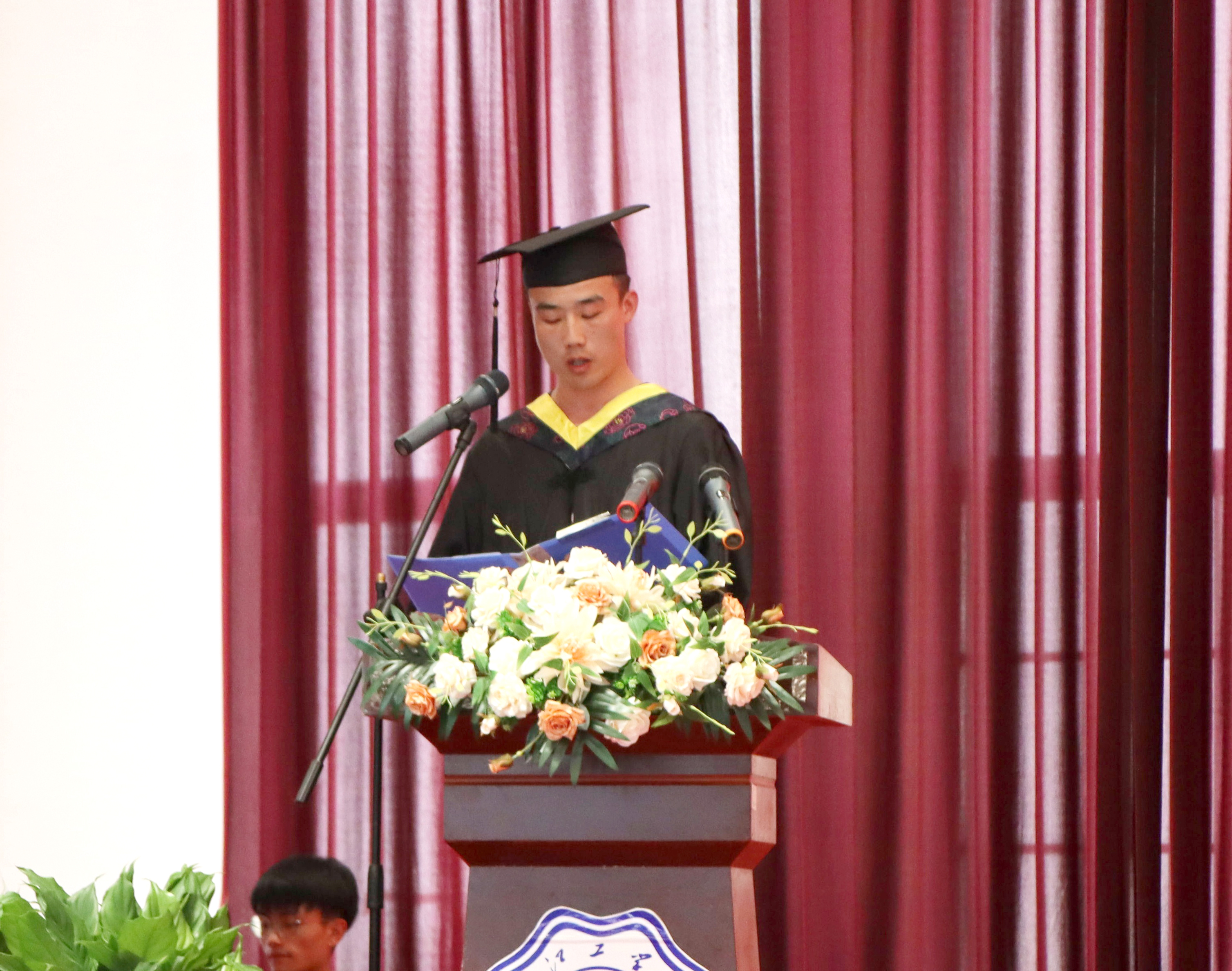 2018级水利水电工程专业张帅同学作为毕业生代表讲话。他讲述了自己四年来在校学习成长的历程,感谢学校对自己携笔从戎的支持与帮助,并代表全体毕业生感谢学校的培养与栽培,感谢学校老师们为所有毕业生的保驾护航。