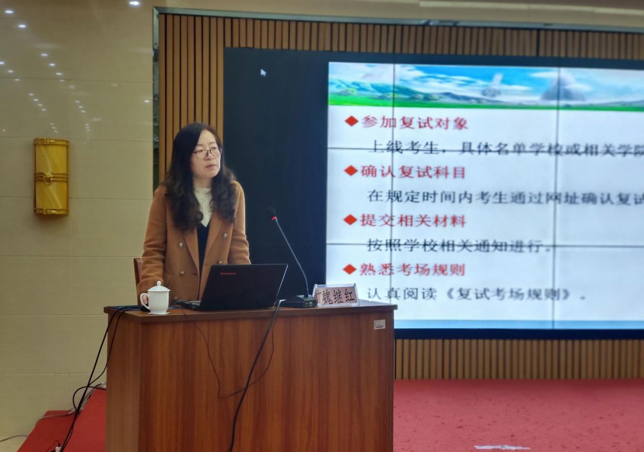教授们从复试的形式和内容,线上复试如何准备,如何在复试过程发挥优势、规避短板;如何在调剂过程中了解调剂规定、掌握调剂单位与专业的选择、填报调剂志愿技巧等方面给学生做了详尽地指导,为考研学子最后阶段的冲刺提供帮扶。传授方法、分享经验、提问交流、解答疑惑,由学校牵头,各二级学院负责人、专业课老师、辅导员积极参与的复试与调剂指导受到广大学生的欢迎。