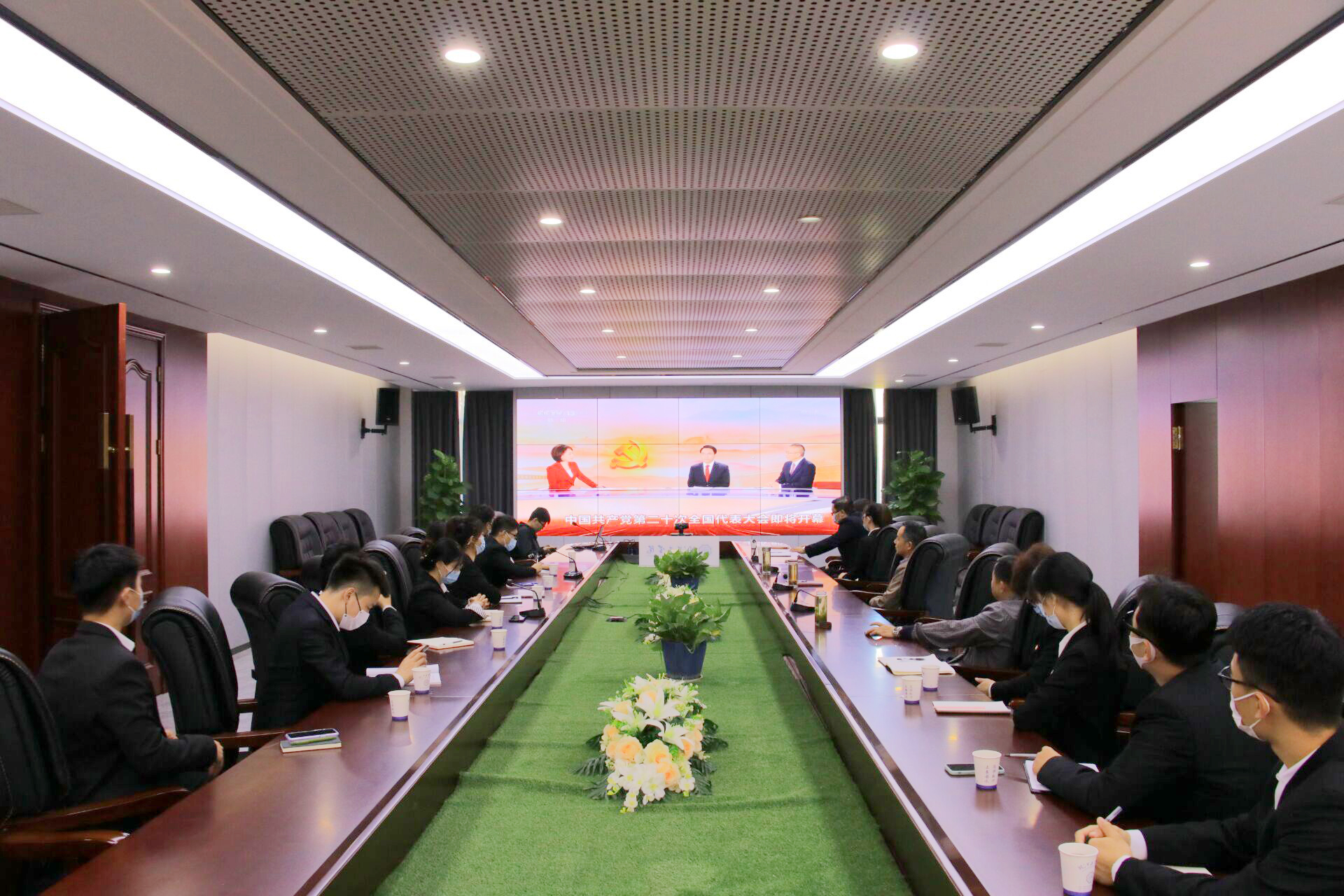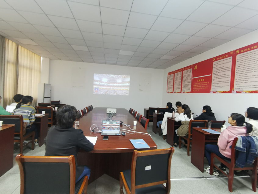 10月16日上午9:30,校领导和学生代表着装整齐、佩戴党徽,早早来到F417会议室,做好集中收看开幕会现场直播盛况的准备。