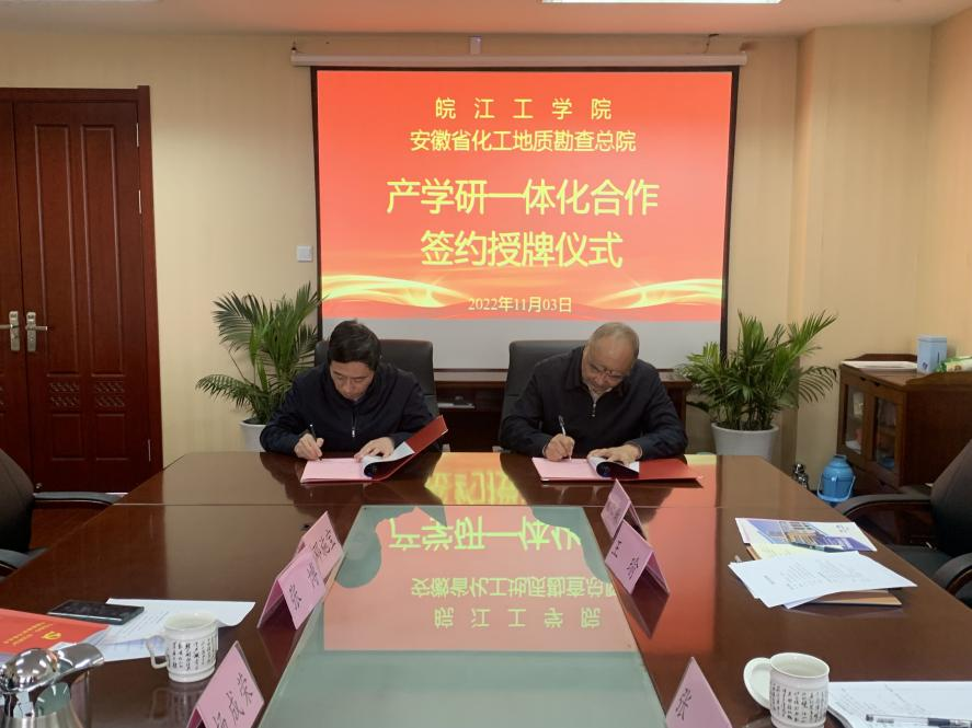 为进一步提升我校人才培养、科学研究与社会服务能力水平,不断推动高校各项职能与地方经济社会发展建设深度融合。11月3日,我校党委副书记张勤,土木工程学院院长唐德高,院党总支副书记王瑜,地质教研室主任吴蓉,测绘教研室主任宋仁琳,学工办副主任程志鹏等前往安徽省化工地质勘察总院,与安徽省化工地质勘察总院签订“产学研一体化合作实习实践基地”共建协议。
