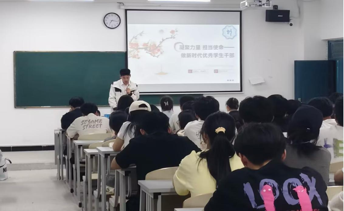 随着3月份以心理、共青团工作为主题的两讲课程结束,4月以高年级学生干部代表为主讲人,围绕“凝聚力量,担当使命——做新时代优秀学生干部”主题开展培训。学生会主席钱鸿杰同学围绕学生干部的角色与价值、核心能力、常见问题与应对策略、行动倡议等方面展开分享。他指出,学生干部需兼具服务者、引领者、学习者三重角色,既要做好师生沟通的桥梁,解决同学实际需求,又要以身作则传递正能量,并在工作实践中积累组织、沟通等能力,并针对时间管理、团队协作等常见问题提出相关建议,建立传帮带机制,帮助促进经验传承。