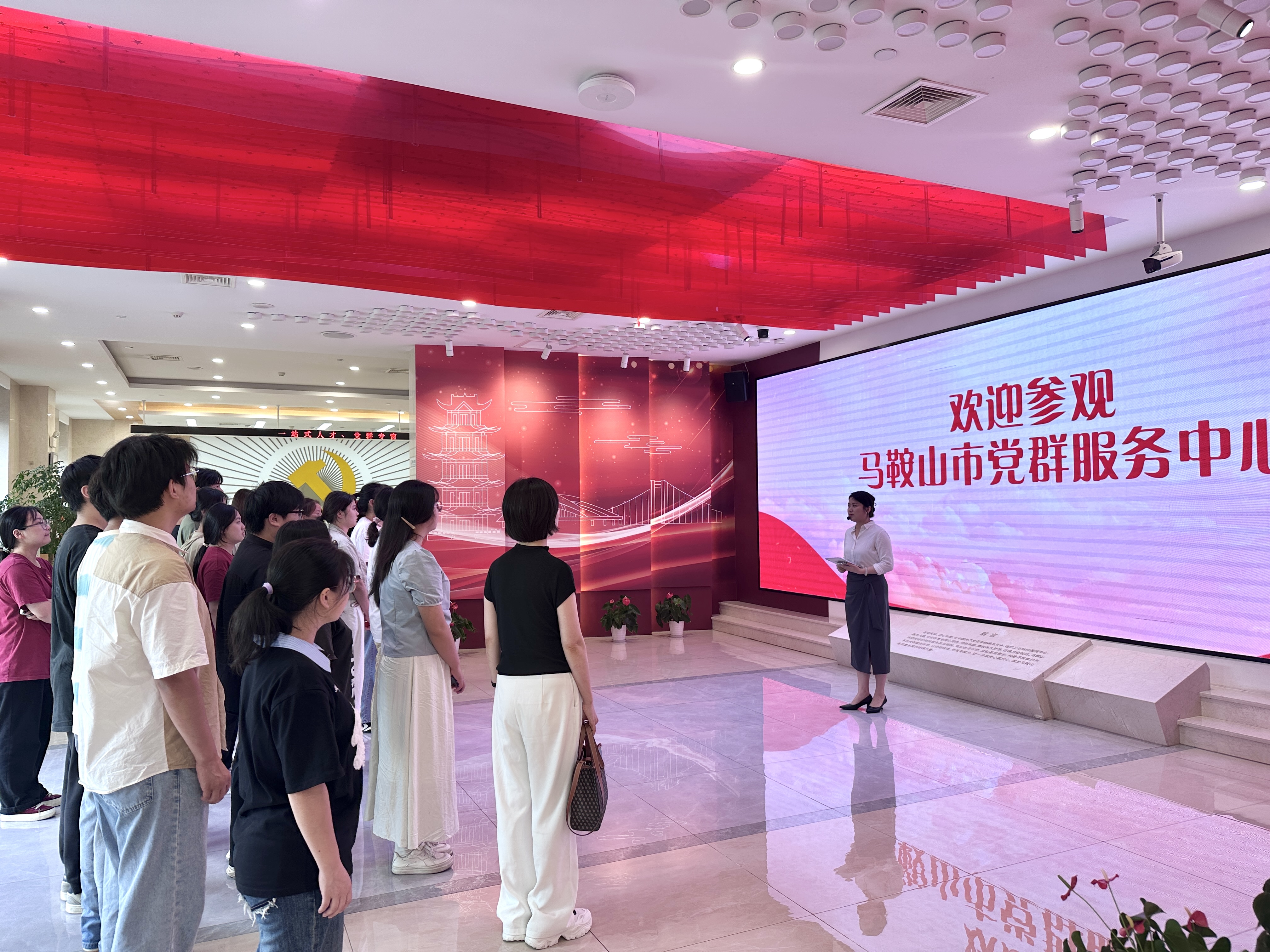 参观结束后,洪璐瑶同志分享自己的感悟,她表示,参观马鞍山市党群服务中心让她深刻感受到党与群众的血肉联系。在讲解员的带领下,通过一幅幅历史图片和鲜活案例,了解到马鞍山市各级党组织如何将政策转化为惠民实效,尤其在民生改善、生态治理方面的成果令人振奋。