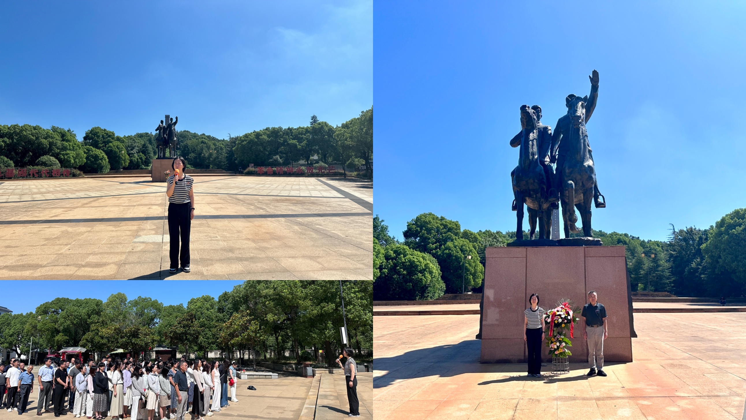 当天上午,全体教师怀着崇敬的心情前往苏南抗战胜利纪念碑。纪念碑广场庄严肃穆,全体教师列队整齐,向为民族独立和人民解放英勇献身的革命先烈敬献花圈,并肃立默哀,深切缅怀革命先烈们。