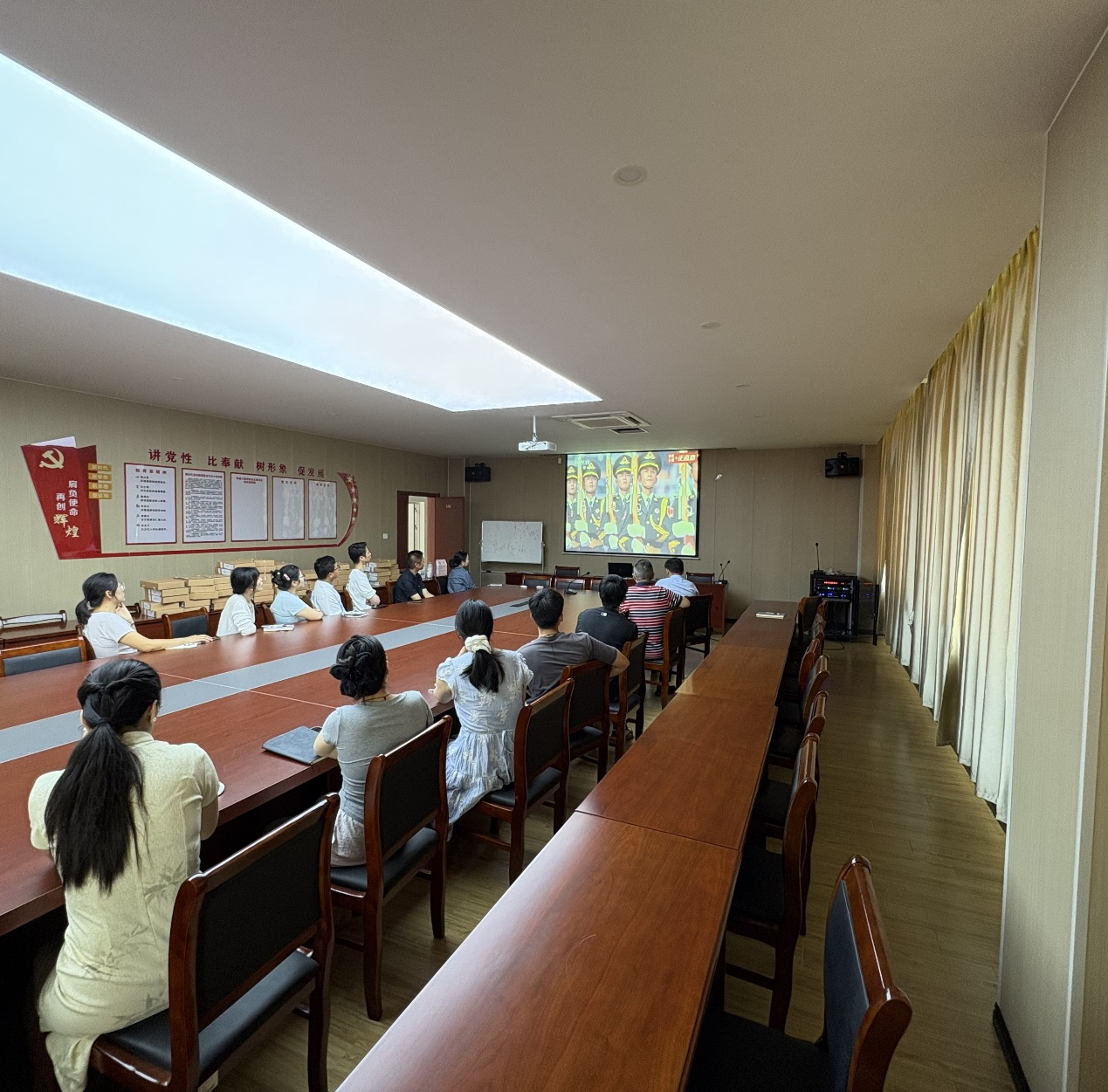 9 月 3 日上午,纪念中国人民抗日战争暨世界反法西斯战争胜利 80 周年大会在北京天安门广场隆重举行。机械工程学院积极响应号召组织教职工在敦行楼518会议室观看阅兵式直播,共同回顾历史,缅怀先烈,汲取奋进力量。