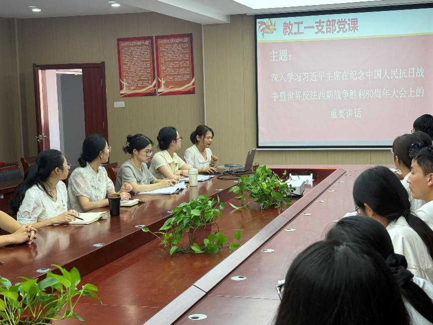 为深入学习贯彻习近平总书记在纪念中国人民抗日战争暨世界反法西斯战争胜利80周年大会上的重要讲话精神,弘扬伟大抗战精神、强化党员使命担当,9月10日下午,土木工程学院教工一支部在水木楼西501会议室举行专题党课,组织全体党员进行深入学习研讨。本次党课由教工一支部书记商娟主持,支部全体党员参加。