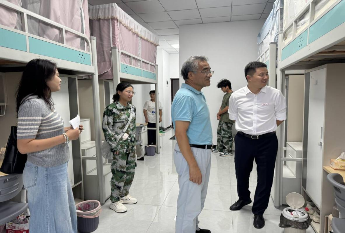 金秋九月,财经学院迎来了2025级新生。为深入了解新生入学和军训情况,帮助他们尽快适应大学生活,财经学院党总支书记、副书记程志鹏、分团委书记裴维平及一二年级辅导员开展了慰问军训新生及宿舍走访活动。